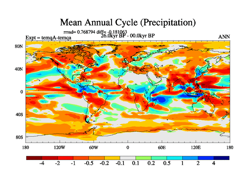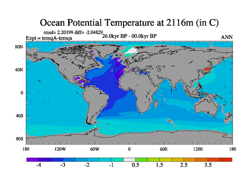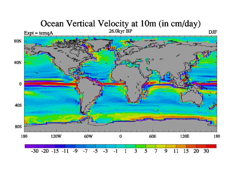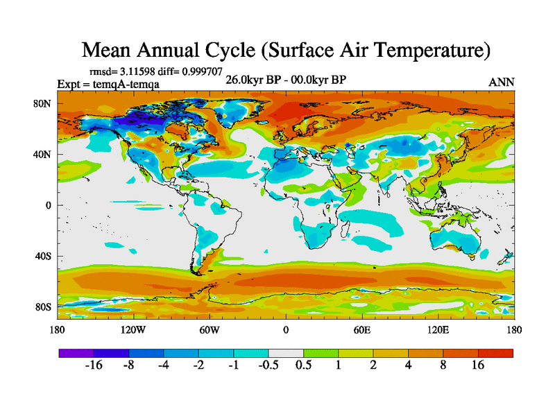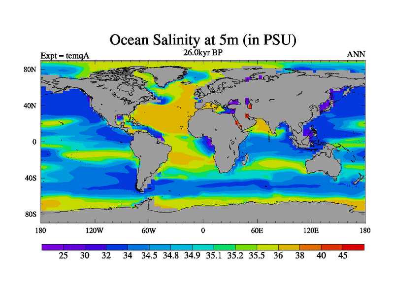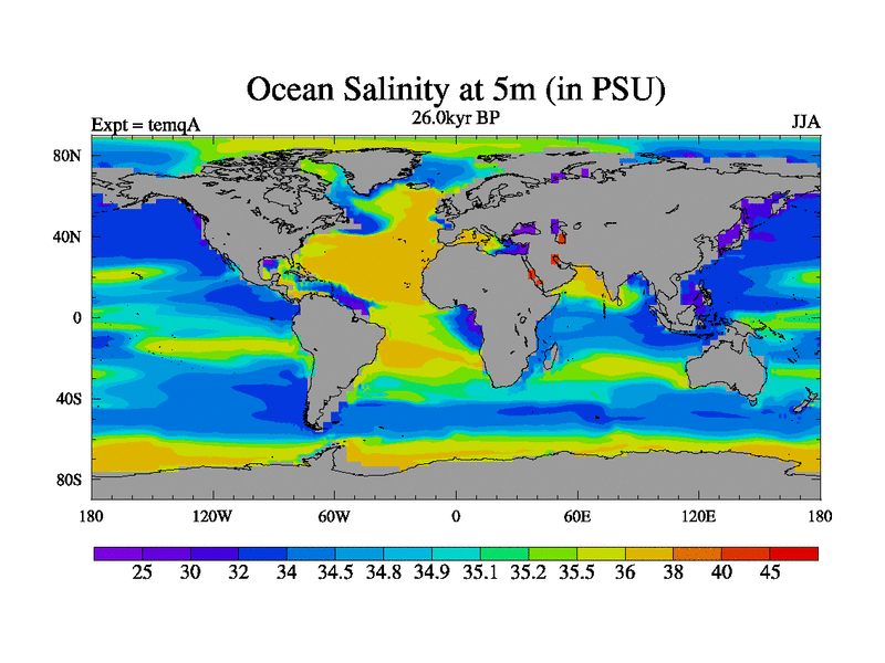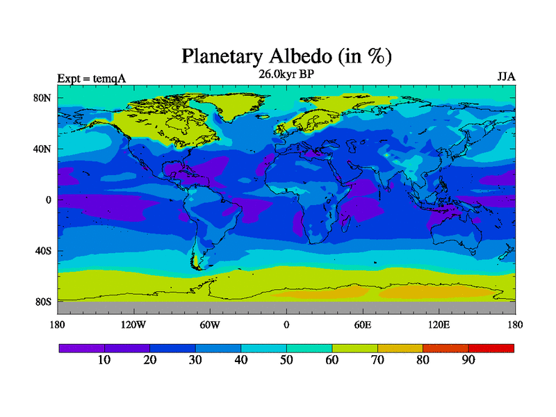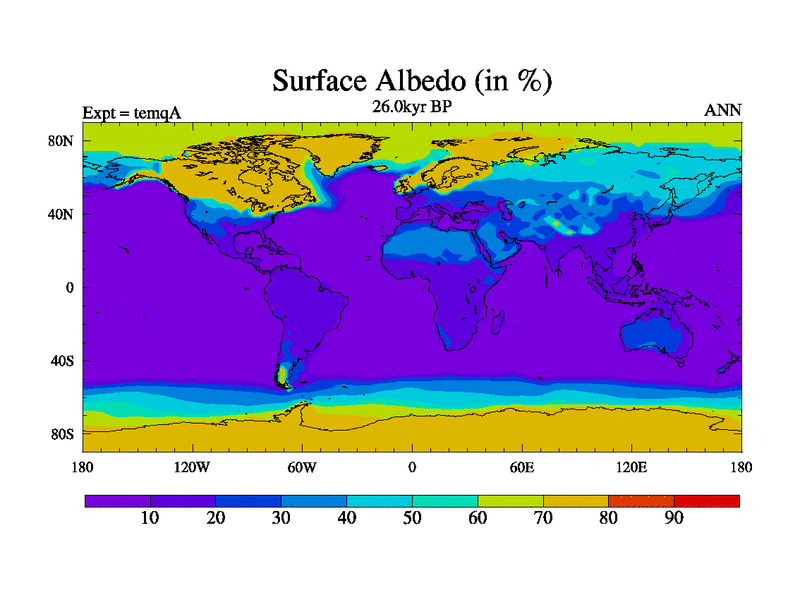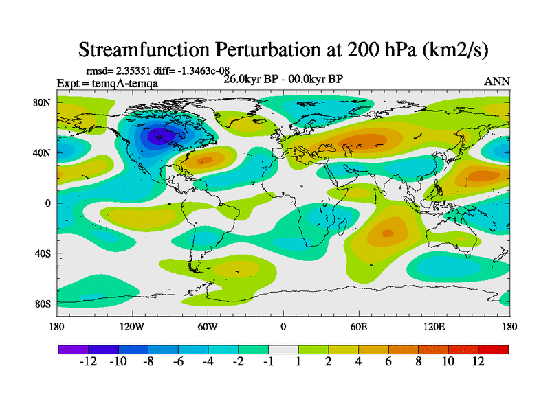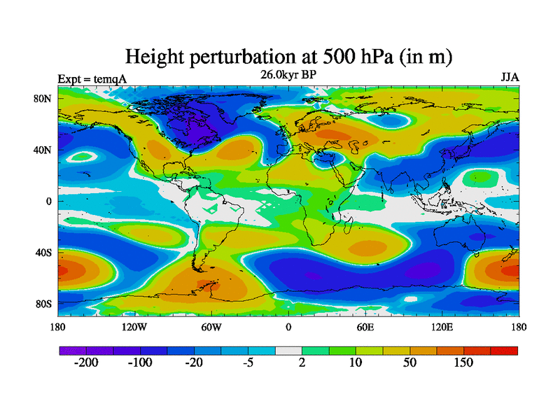 This is the 26.0 kyr BP simulation for an extension of the temi series but with CO2 set to the 100 year means of the transient runs. Deglaciation BBC runs using Peltier6g and TRIFFID. Dynamic mode.