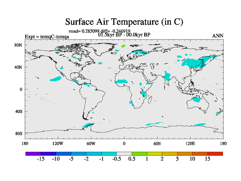 This is the 01.5 kyr BP simulation for an extension of the temi series but with CO2 set to the 100 year means of the transient runs. Deglaciation BBC runs using Peltier6g and TRIFFID. Dynamic mode.