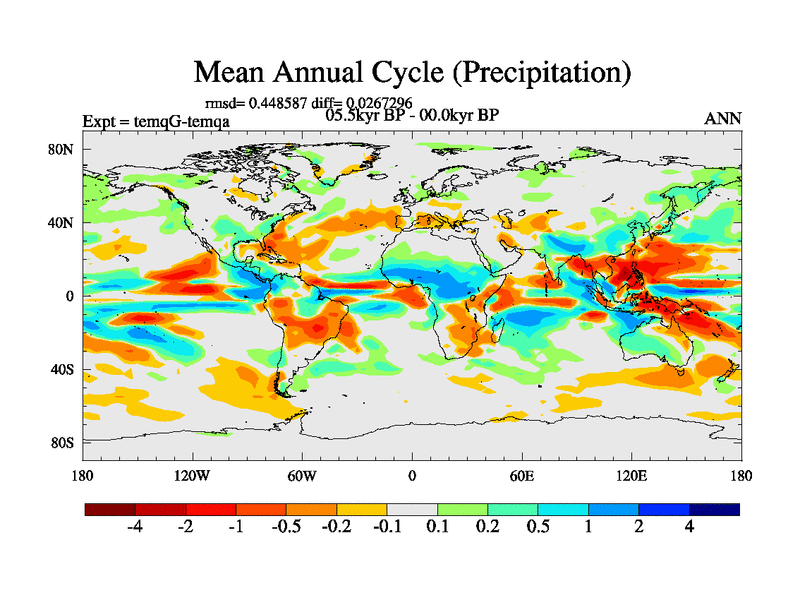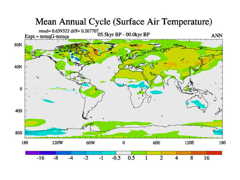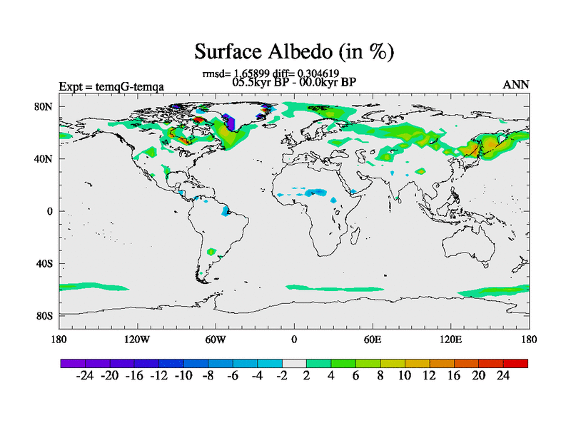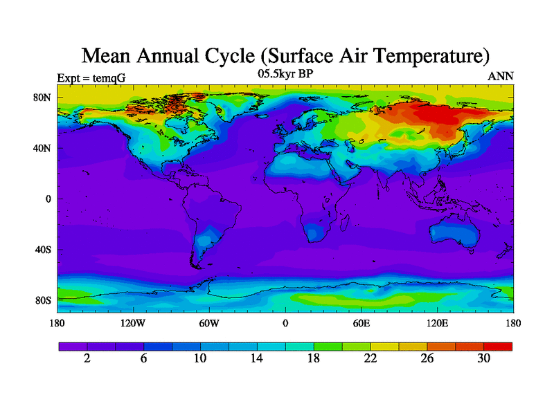 This is the 05.5 kyr BP simulation for an extension of the temi series but with CO2 set to the 100 year means of the transient runs. Deglaciation BBC runs using Peltier6g and TRIFFID. Dynamic mode.