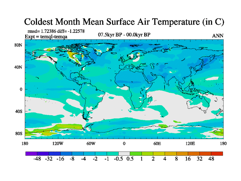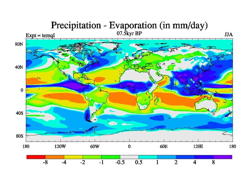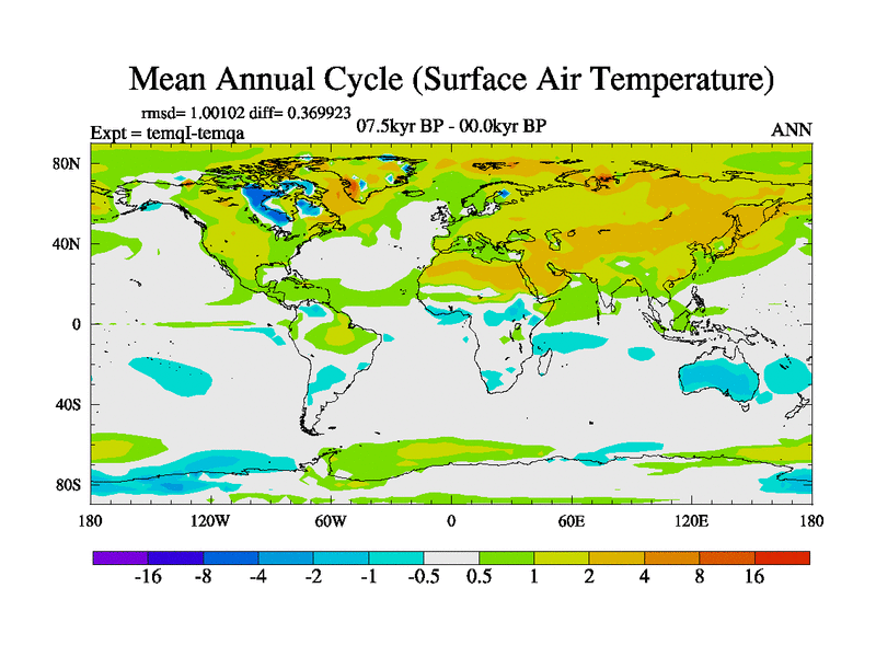 This is the 07.5 kyr BP simulation for an extension of the temi series but with CO2 set to the 100 year means of the transient runs. Deglaciation BBC runs using Peltier6g and TRIFFID. Dynamic mode.