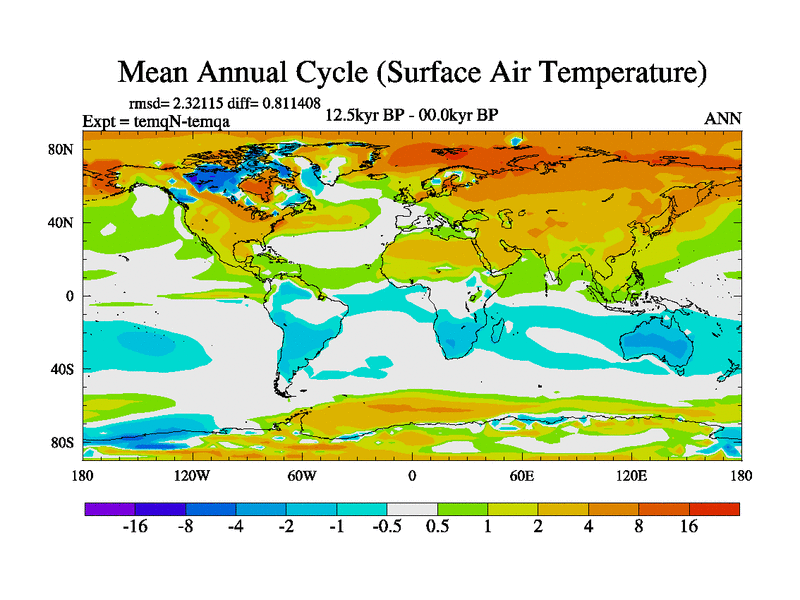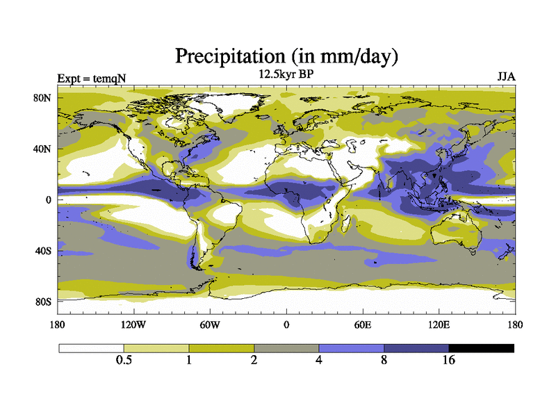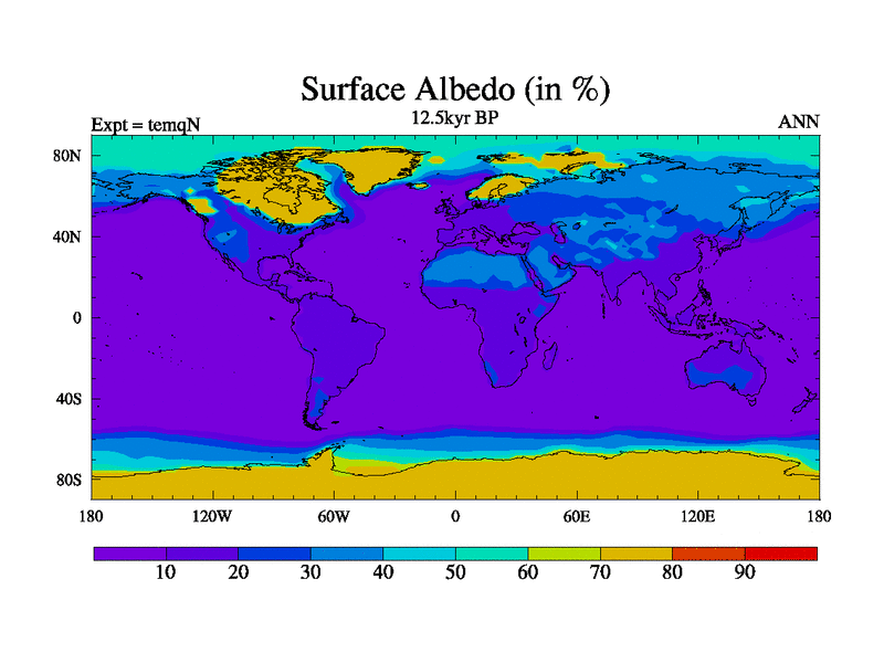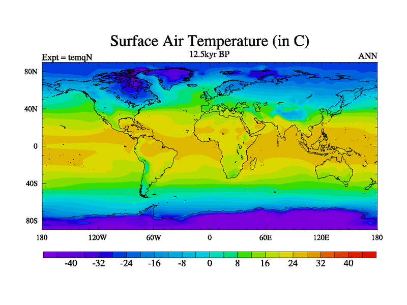 This is the 12.5 kyr BP simulation for an extension of the temi series but with CO2 set to the 100 year means of the transient runs. Deglaciation BBC runs using Peltier6g and TRIFFID. Dynamic mode.