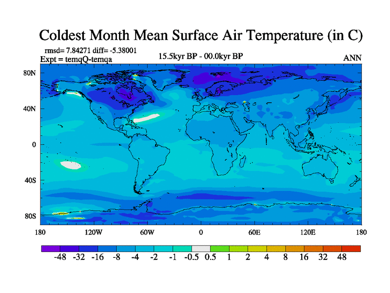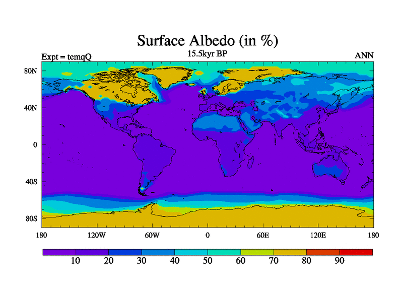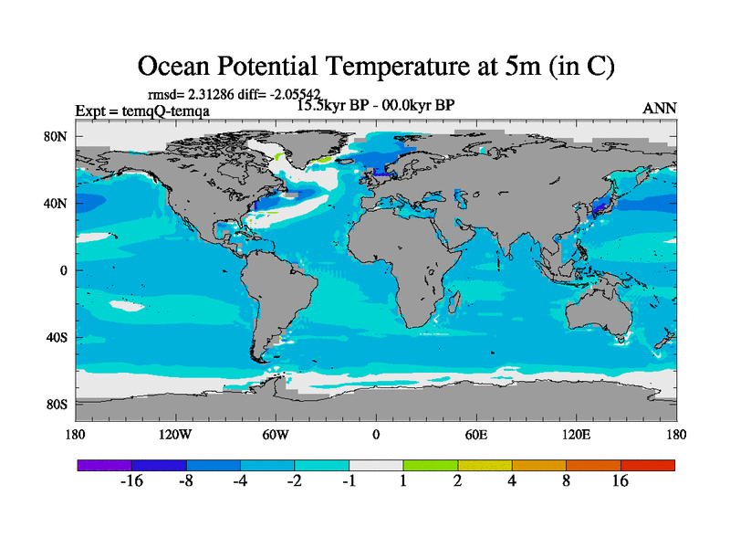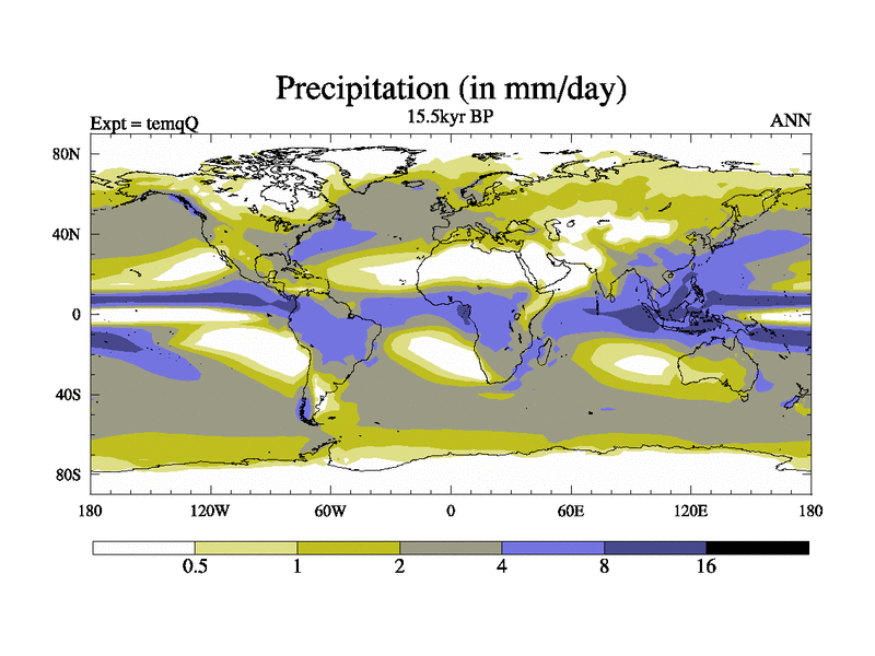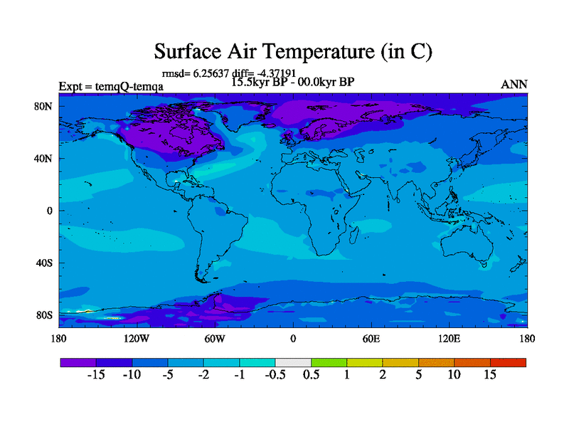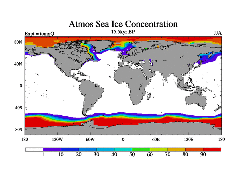 This is the 15.5 kyr BP simulation for an extension of the temi series but with CO2 set to the 100 year means of the transient runs. Deglaciation BBC runs using Peltier6g and TRIFFID. Dynamic mode.