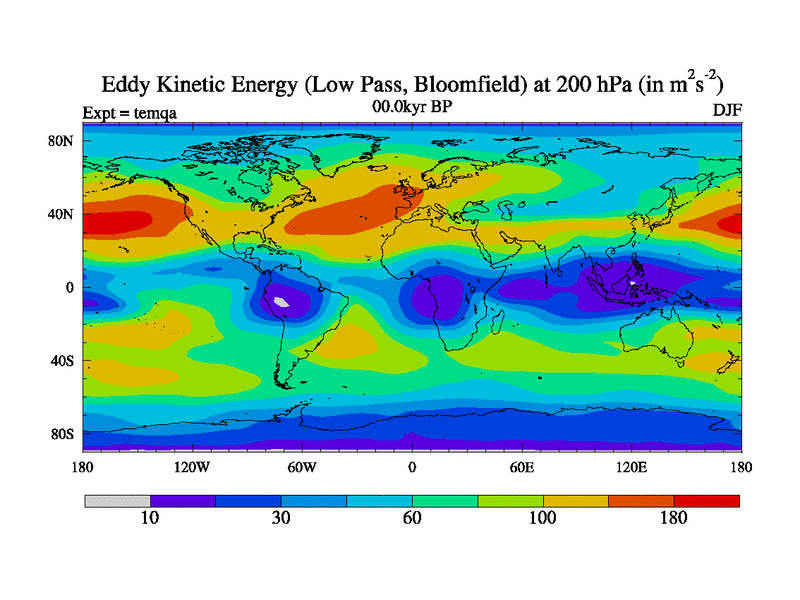 Low Pass Eddy Kinetic Energy at 200 hPa