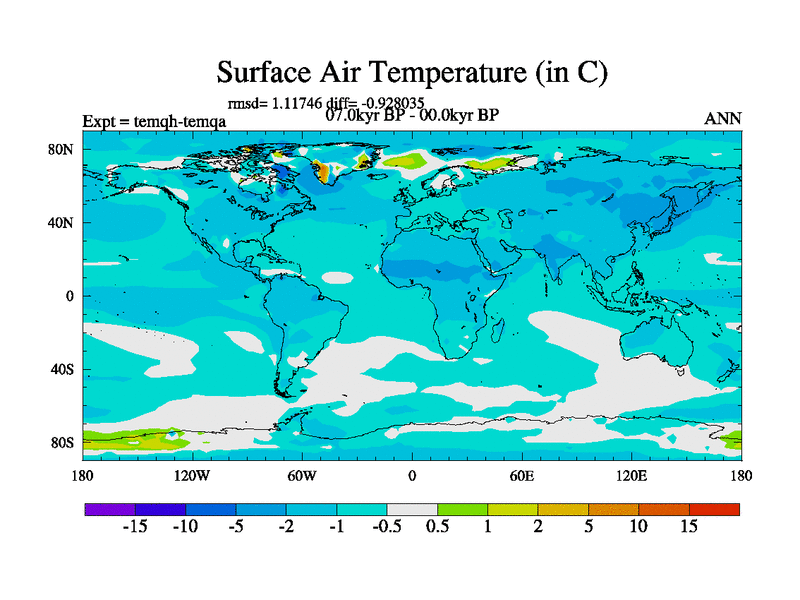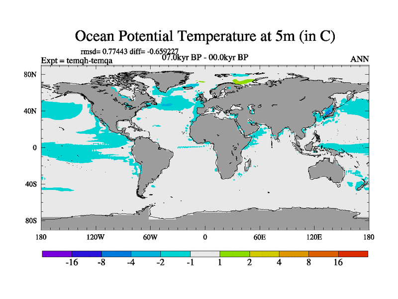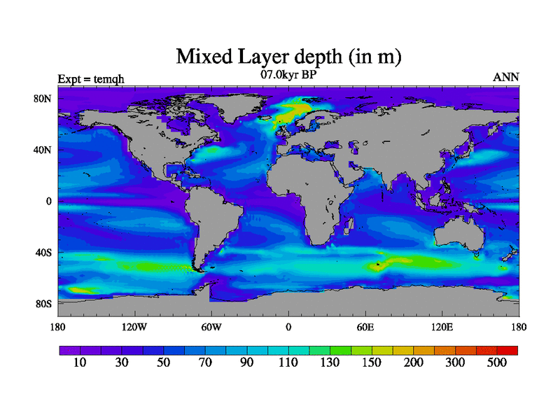 This is the 07.0 kyr BP simulation for an extension of the temi series but with CO2 set to the 100 year means of the transient runs. Deglaciation BBC runs using Peltier6g and TRIFFID. Dynamic mode.