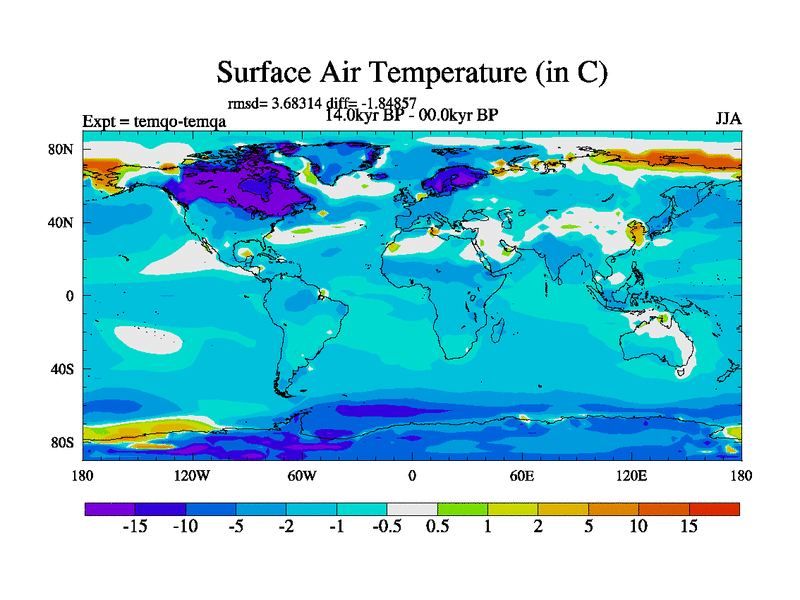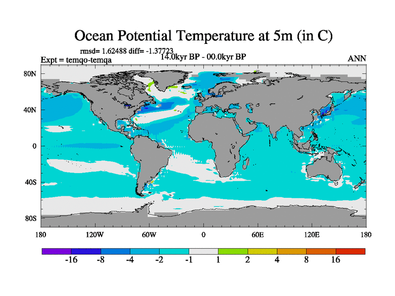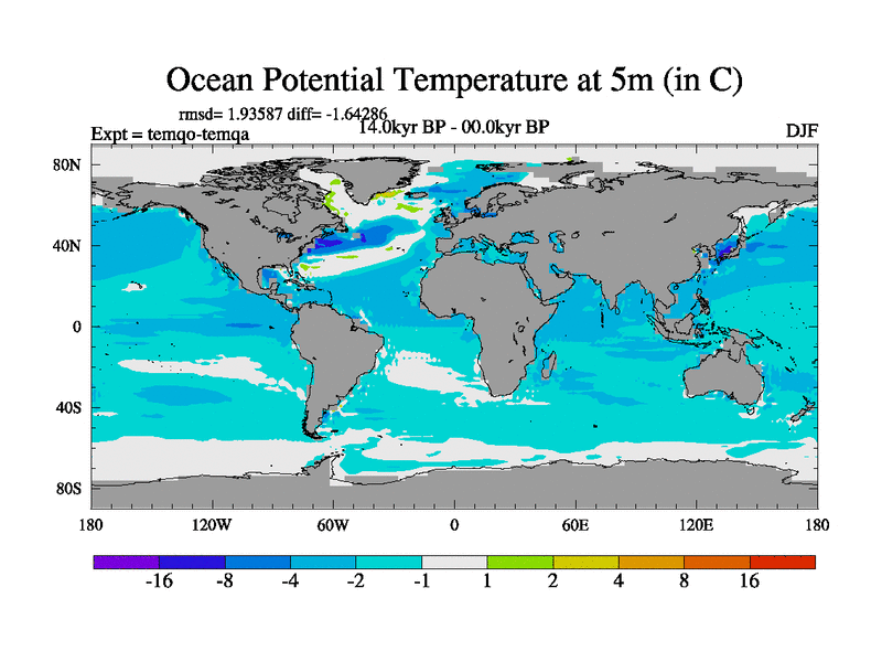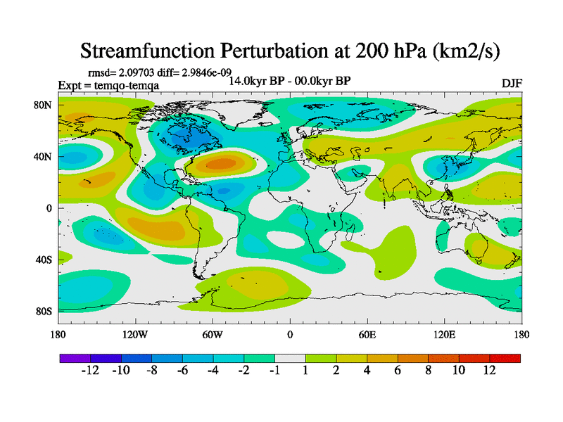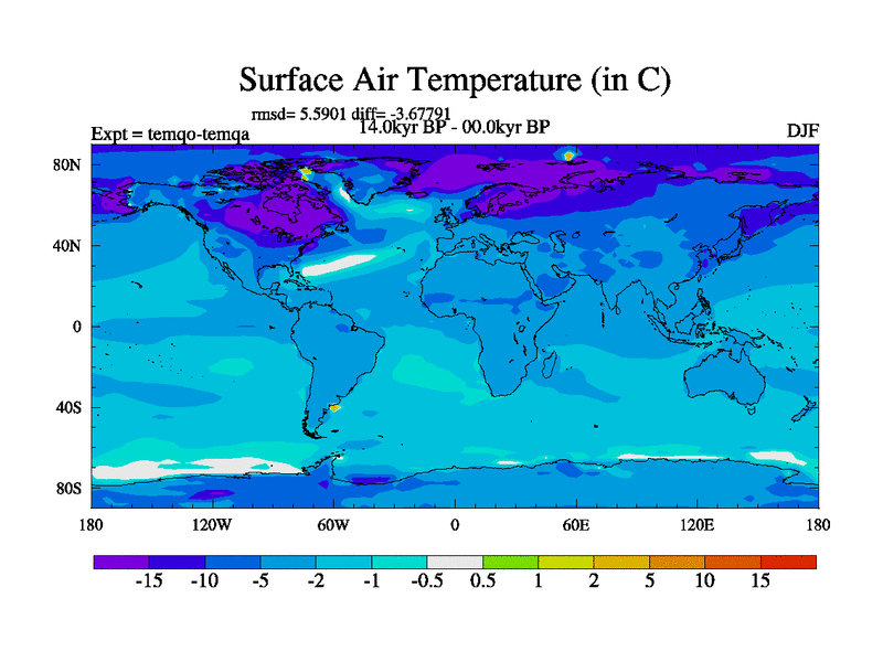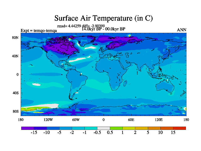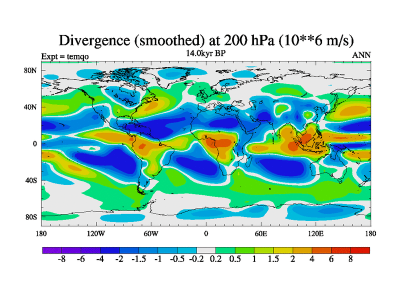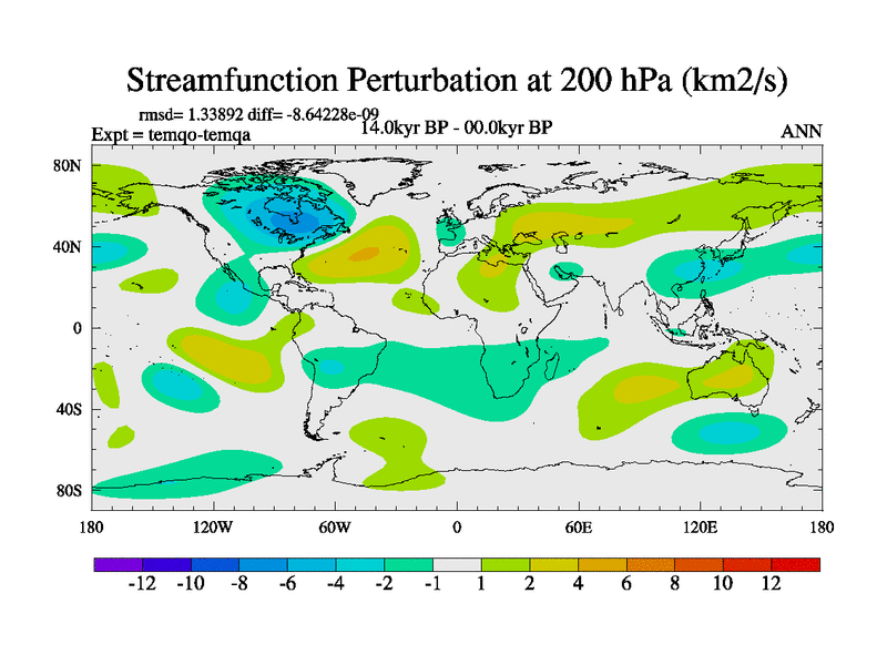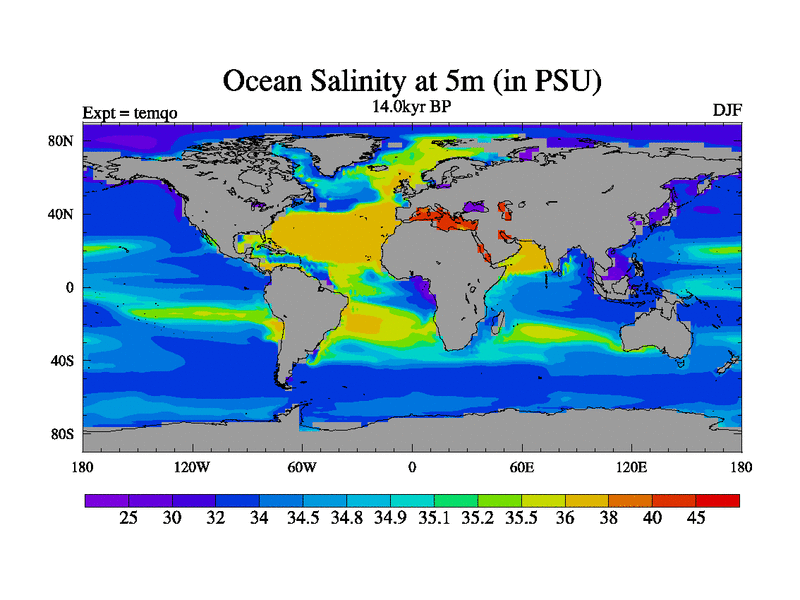 This is the 14.0 kyr BP simulation for an extension of the temi series but with CO2 set to the 100 year means of the transient runs. Deglaciation BBC runs using Peltier6g and TRIFFID. Dynamic mode.