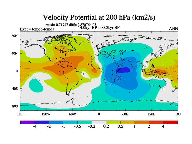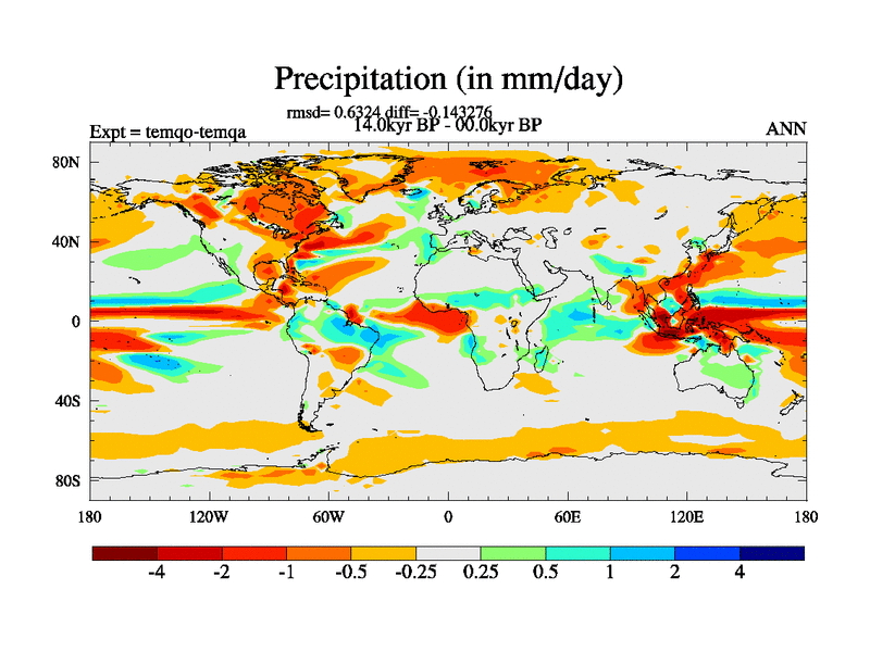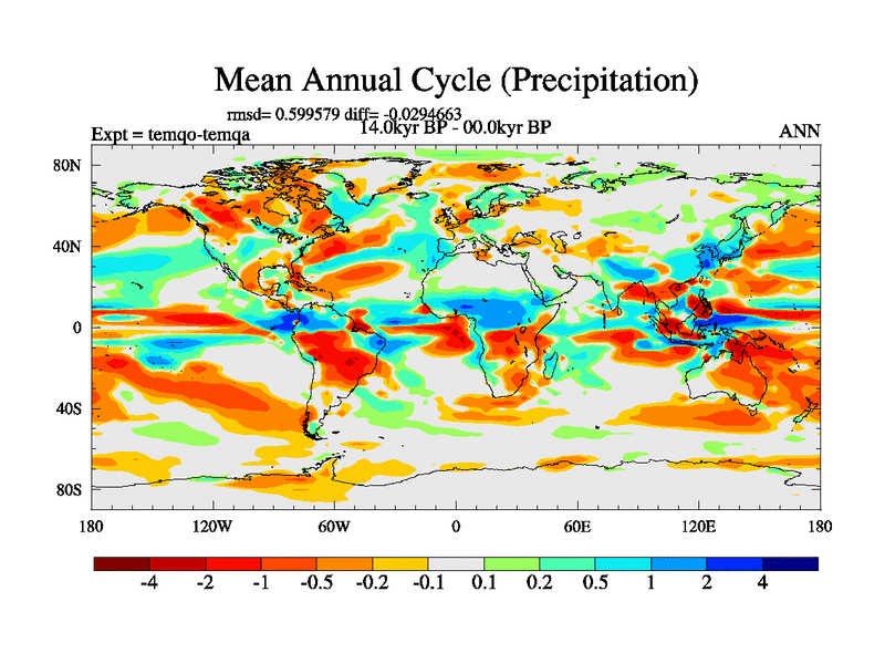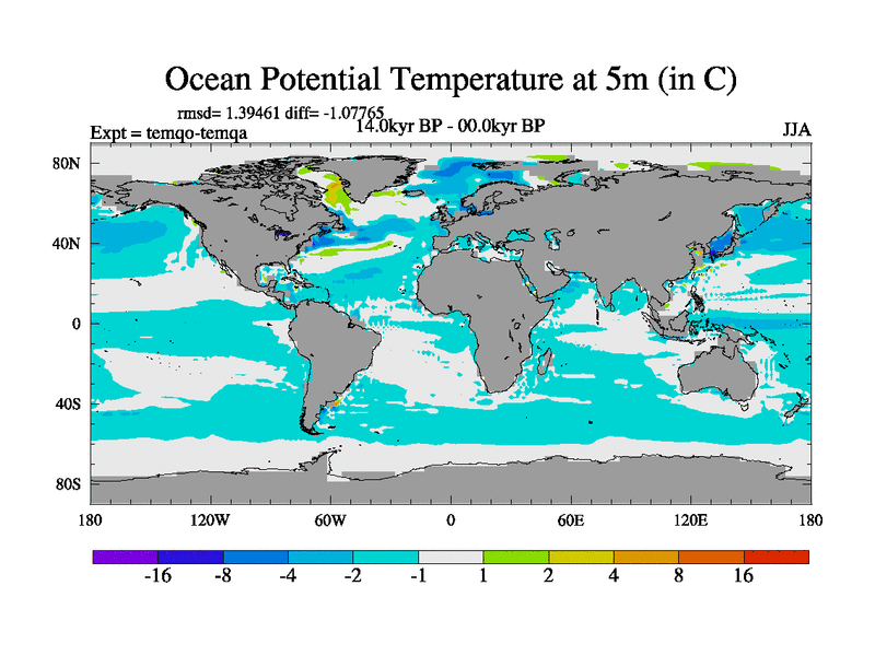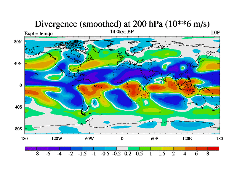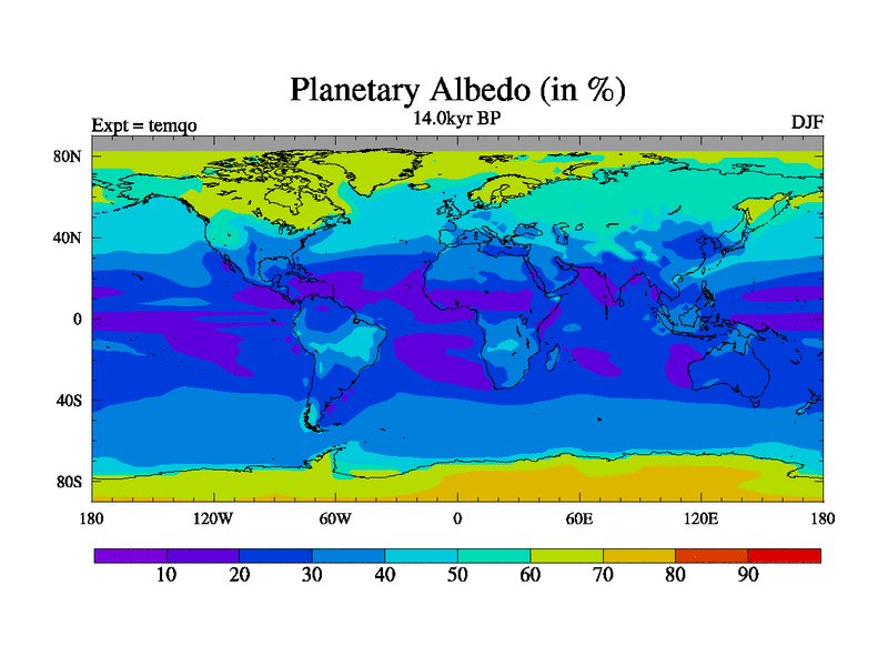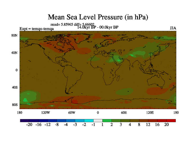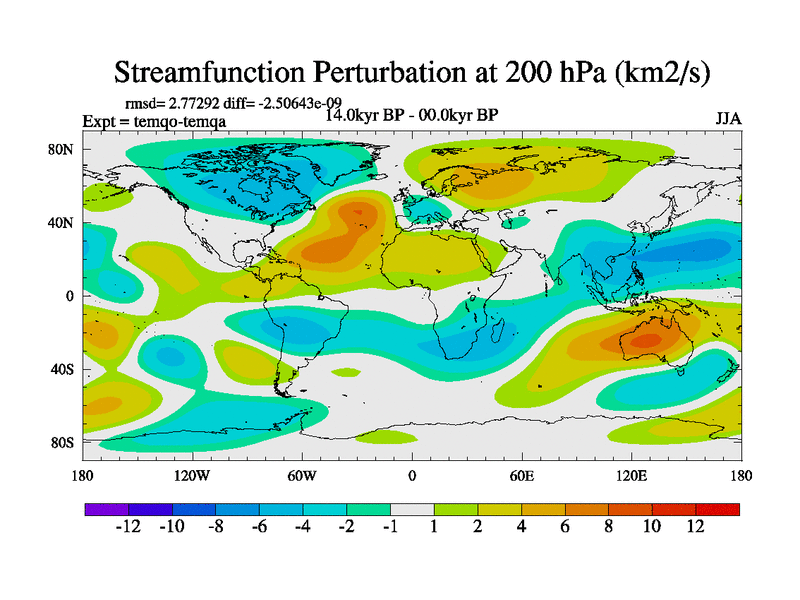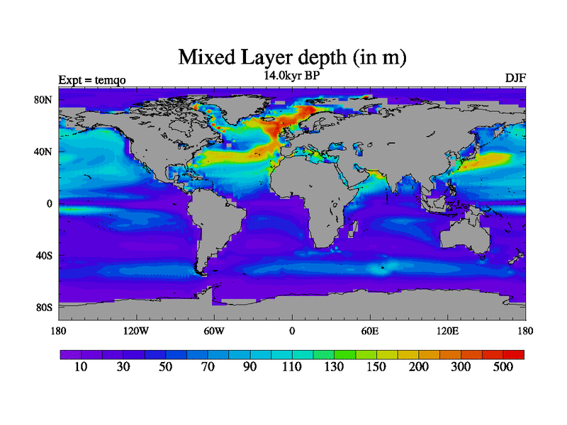 This is the 14.0 kyr BP simulation for an extension of the temi series but with CO2 set to the 100 year means of the transient runs. Deglaciation BBC runs using Peltier6g and TRIFFID. Dynamic mode.