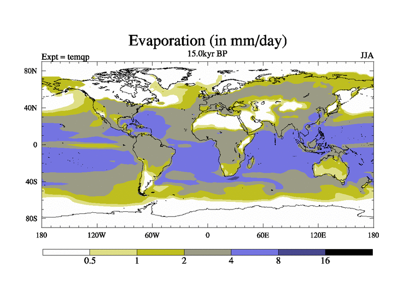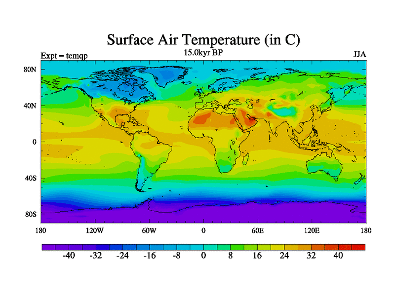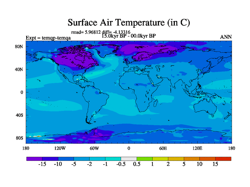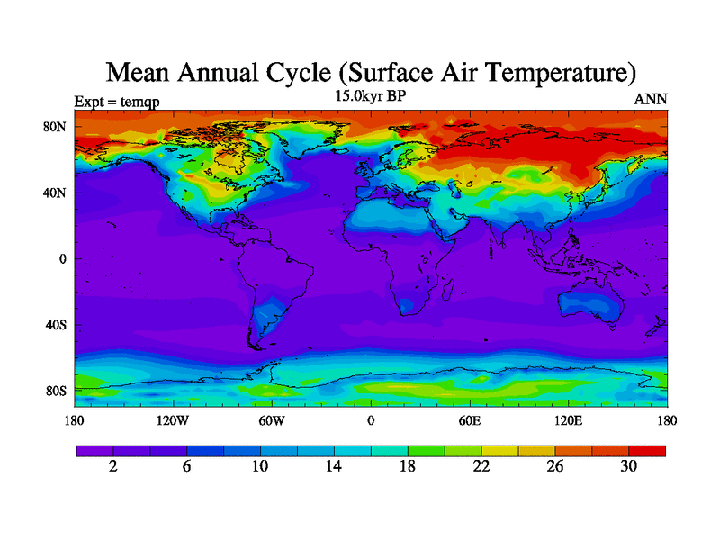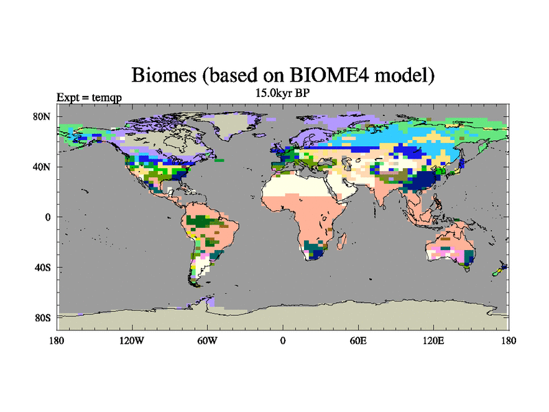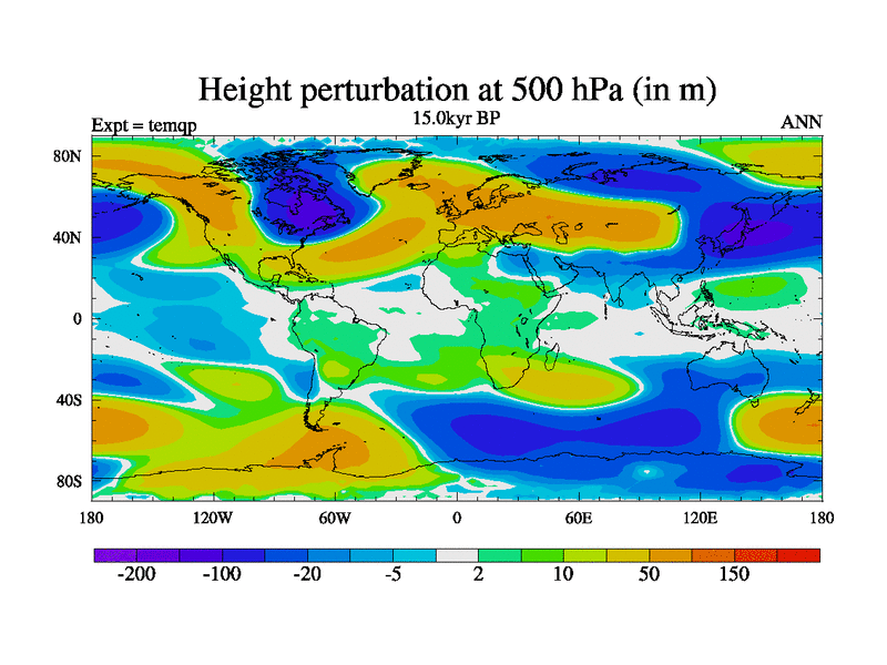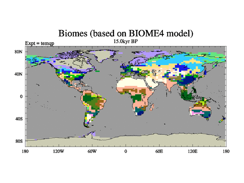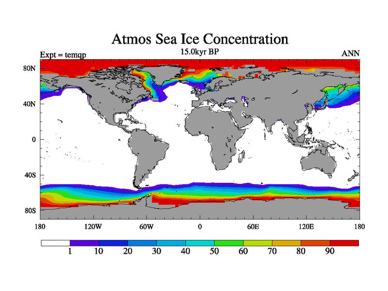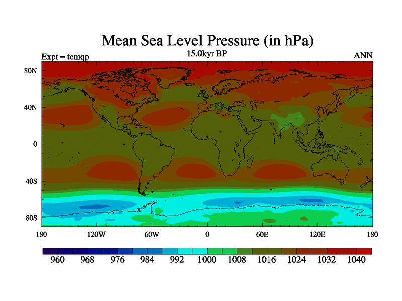 This is the 15.0 kyr BP simulation for an extension of the temi series but with CO2 set to the 100 year means of the transient runs. Deglaciation BBC runs using Peltier6g and TRIFFID. Dynamic mode.