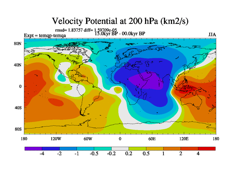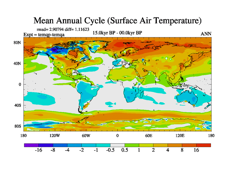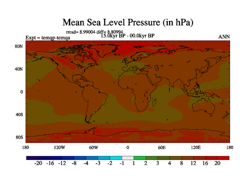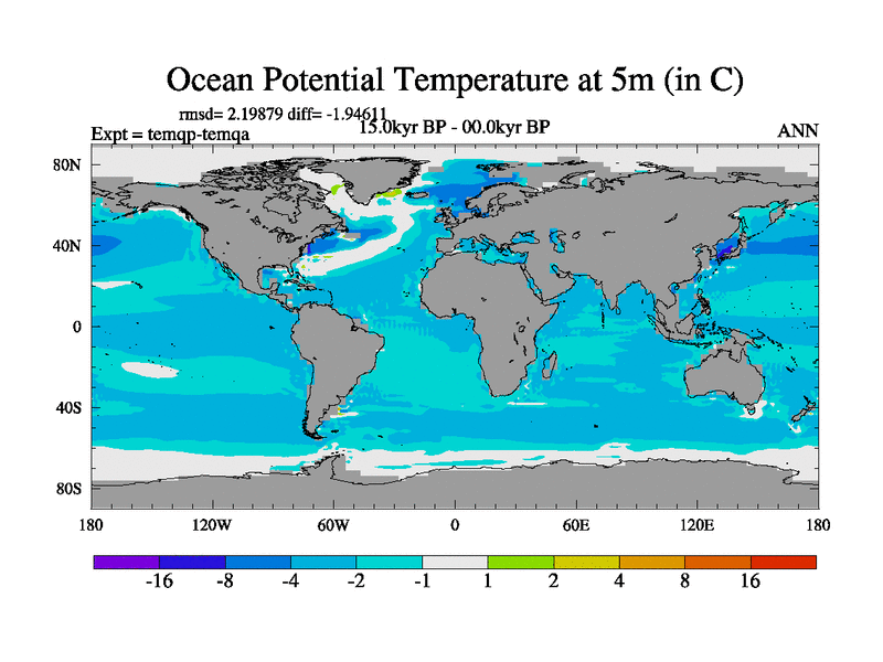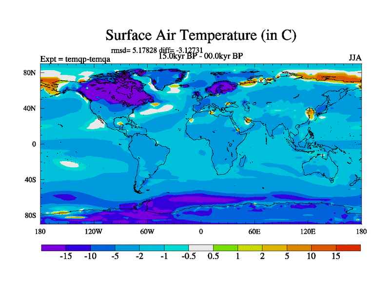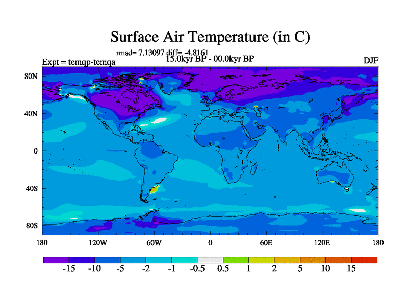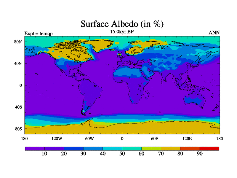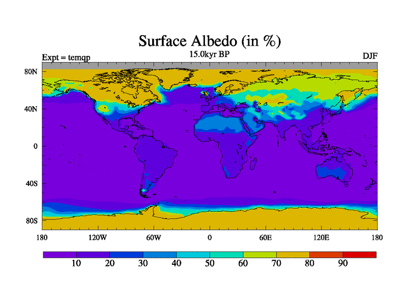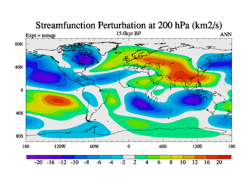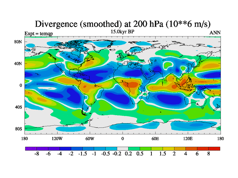 This is the 15.0 kyr BP simulation for an extension of the temi series but with CO2 set to the 100 year means of the transient runs. Deglaciation BBC runs using Peltier6g and TRIFFID. Dynamic mode.