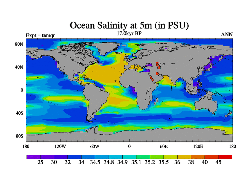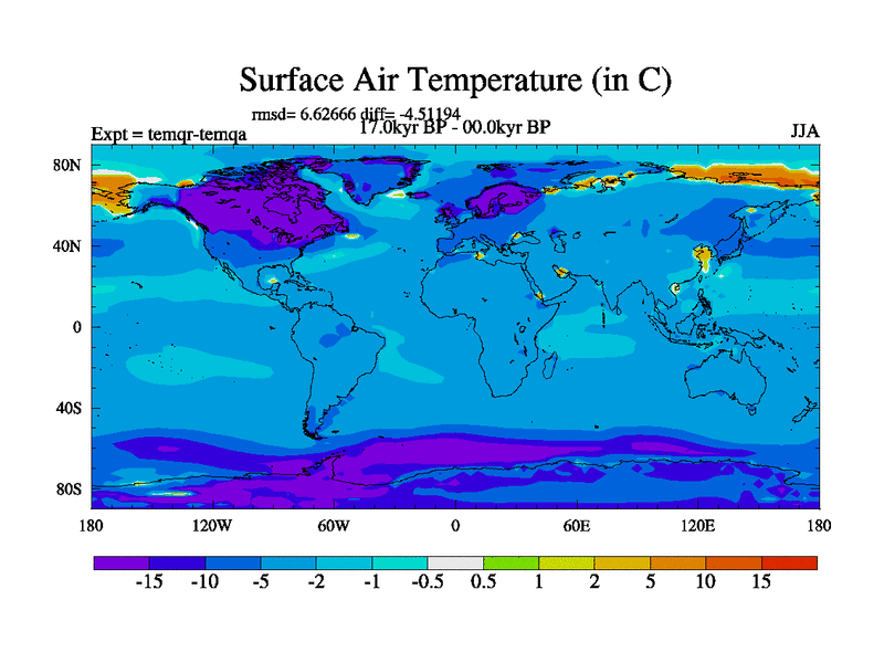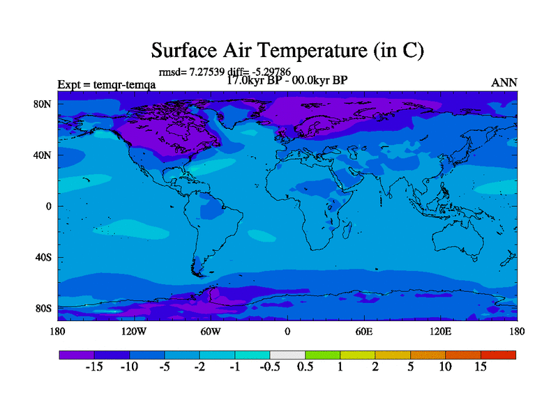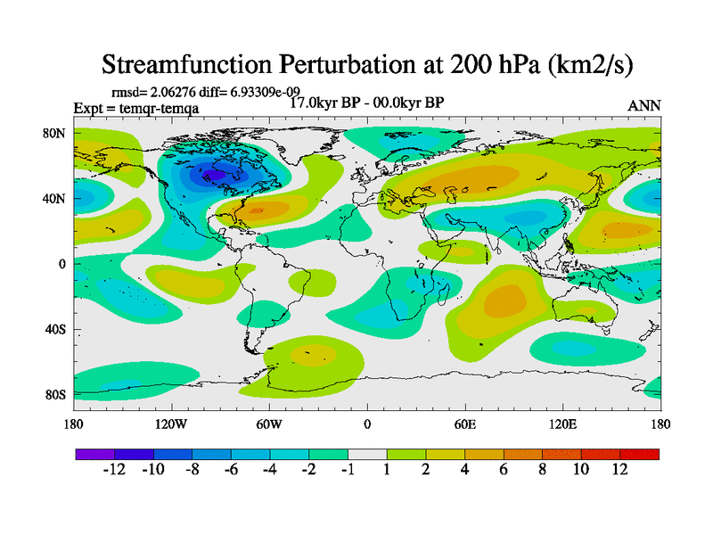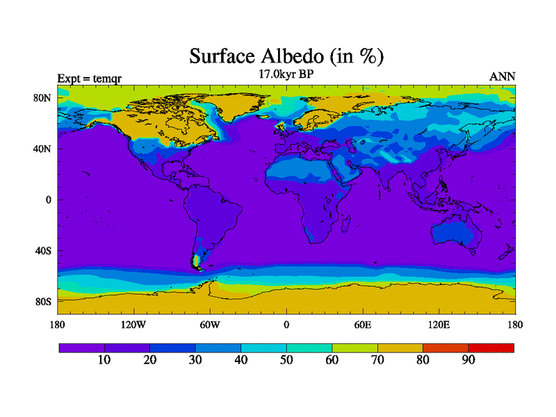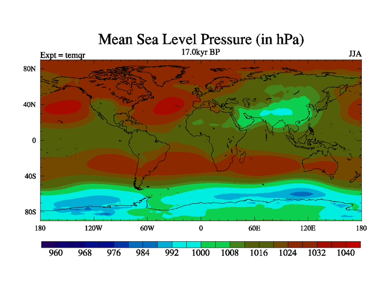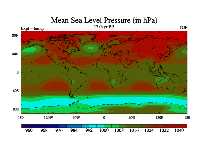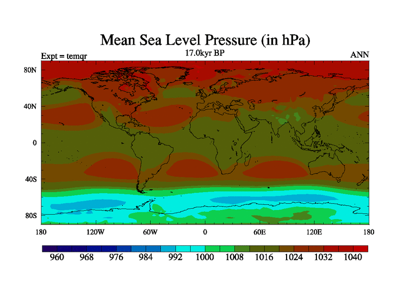 This is the 17.0 kyr BP simulation for an extension of the temi series but with CO2 set to the 100 year means of the transient runs. Deglaciation BBC runs using Peltier6g and TRIFFID. Dynamic mode.
