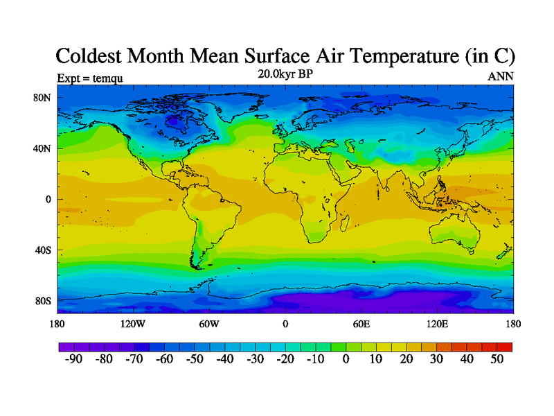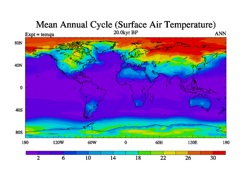 This is the 20.0 kyr BP simulation for an extension of the temi series but with CO2 set to the 100 year means of the transient runs. Deglaciation BBC runs using Peltier6g and TRIFFID. Dynamic mode.