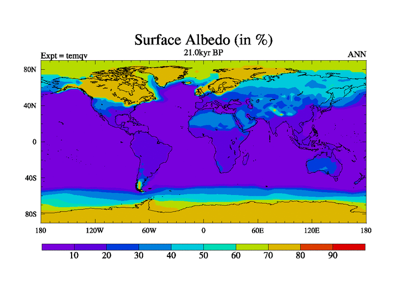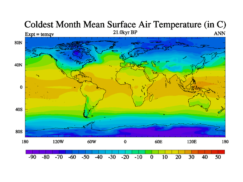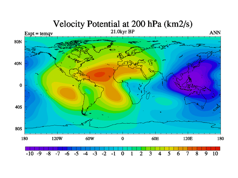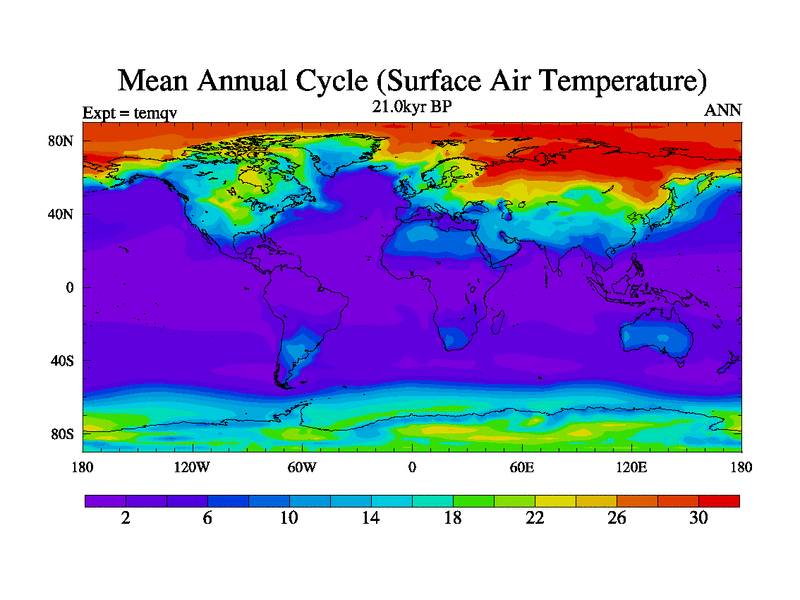 This is the 21.0 kyr BP simulation for an extension of the temi series but with CO2 set to the 100 year means of the transient runs. Deglaciation BBC runs using Peltier6g and TRIFFID. Dynamic mode.