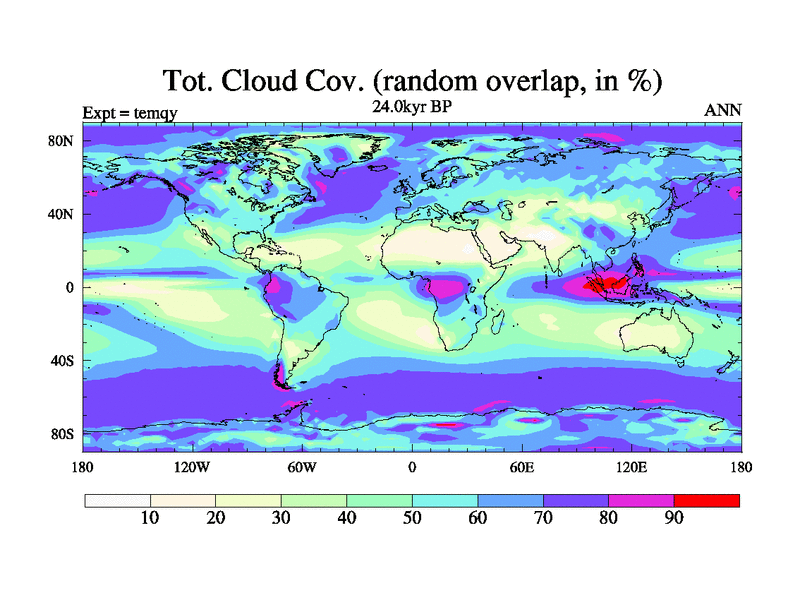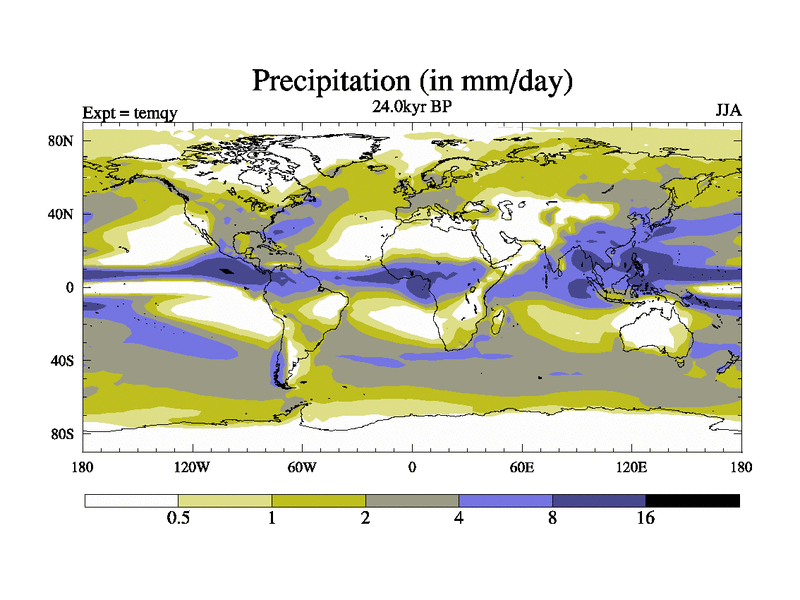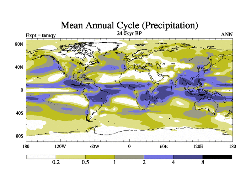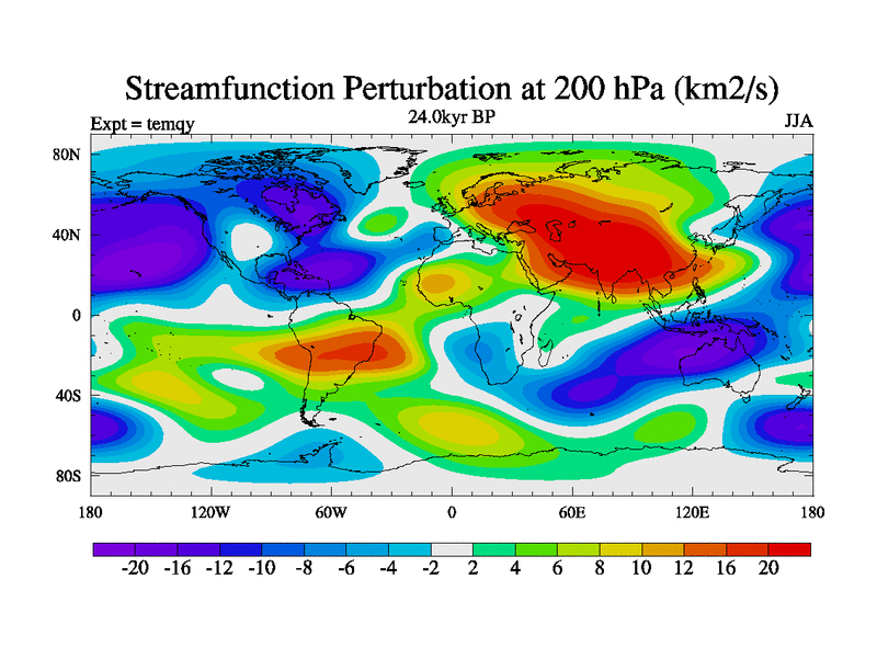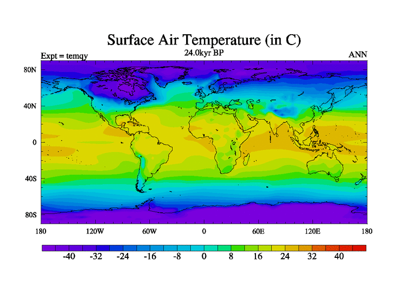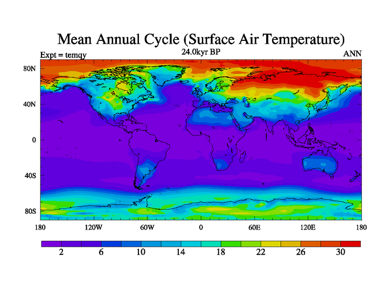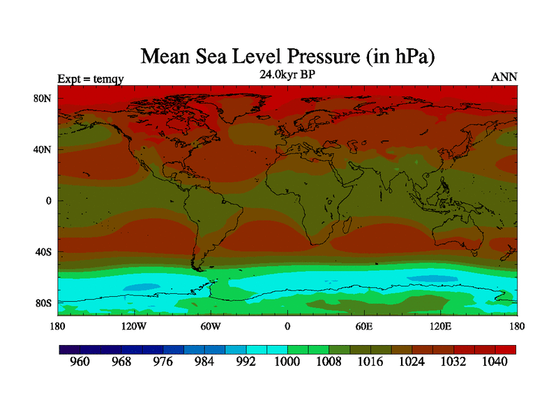 This is the 24.0 kyr BP simulation for an extension of the temi series but with CO2 set to the 100 year means of the transient runs. Deglaciation BBC runs using Peltier6g and TRIFFID. Dynamic mode.