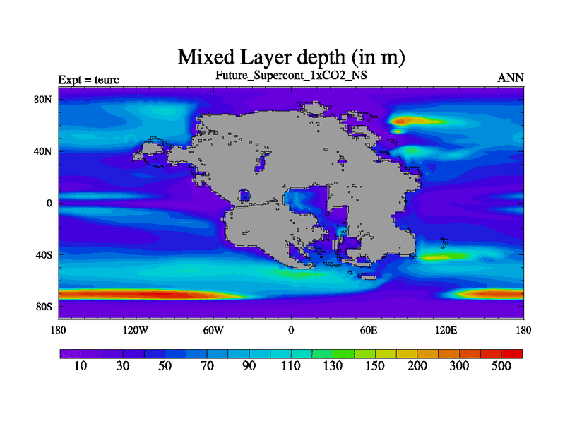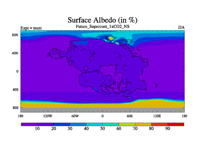 A future superconinental configuration based on the Scotese paleomap dataset. 1xCO2. Normal solar. Age tracers started from teurb.