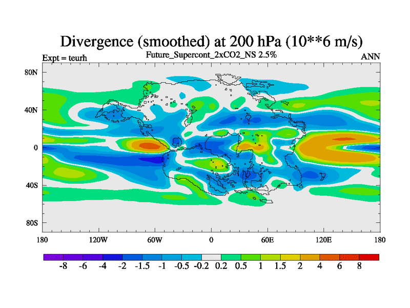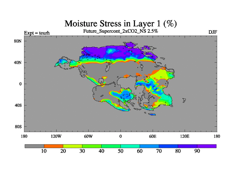 A future superconinental configuration based on the Scotese paleomap dataset. 2xCO2. Normal solar 2.5%. Age tracers started from teurb.