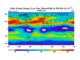 Low Pass Eddy Kinetic Energy at 200 hPa