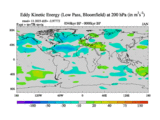 Low Pass Eddy Kinetic Energy at 200 hPa