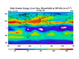 Low Pass Eddy Kinetic Energy at 200 hPa