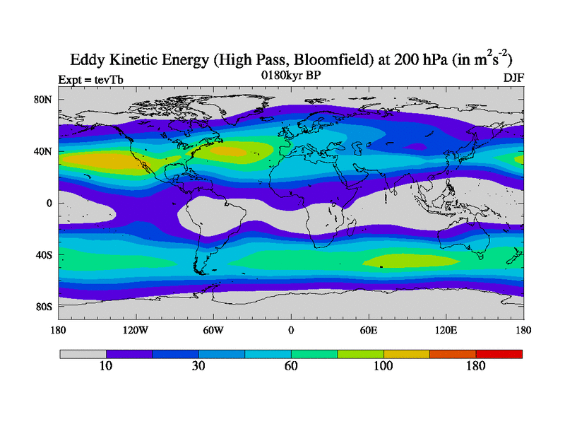 Low Pass Eddy Kinetic Energy at 200 hPa