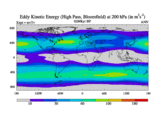 High Pass Eddy Kinetic Energy at 200 hPa