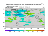 Low Pass Eddy Kinetic Energy at 200 hPa
