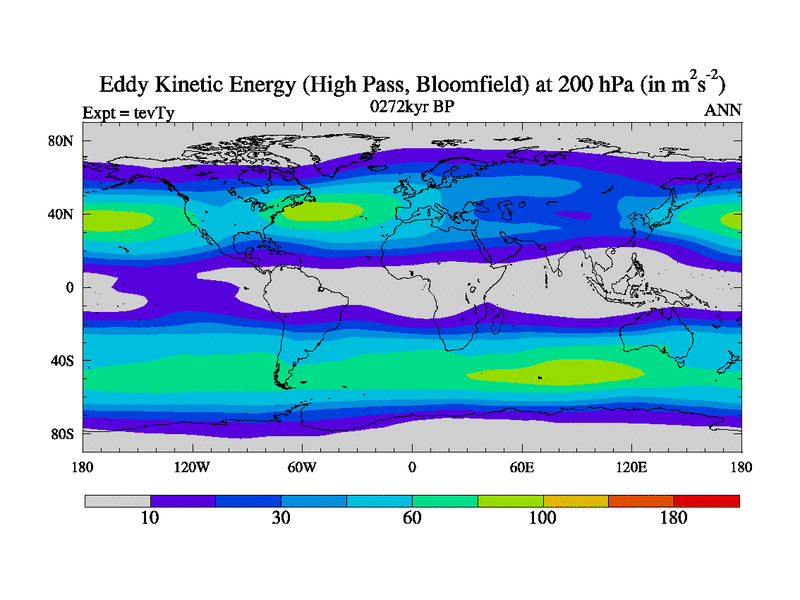 High Pass Eddy Kinetic Energy at 200 hPa