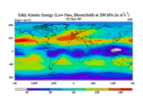 Low Pass Eddy Kinetic Energy at 200 hPa
