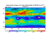 Low Pass Eddy Kinetic Energy at 200 hPa