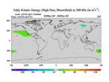 Low Pass Eddy Kinetic Energy at 200 hPa