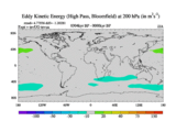 Low Pass Eddy Kinetic Energy at 200 hPa