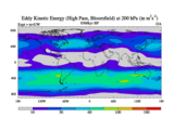 Low Pass Eddy Kinetic Energy at 200 hPa