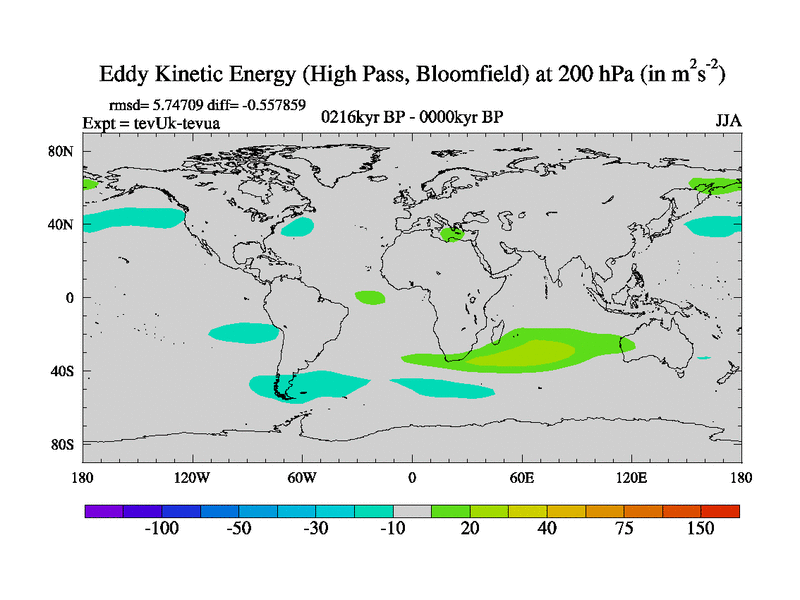 Low Pass Eddy Kinetic Energy at 200 hPa