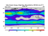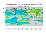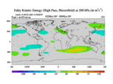 Low Pass Eddy Kinetic Energy at 200 hPa