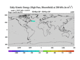 Low Pass Eddy Kinetic Energy at 200 hPa