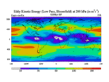 Low Pass Eddy Kinetic Energy at 200 hPa