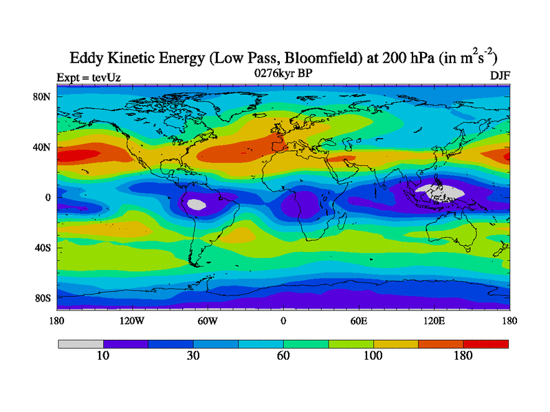 Low Pass Eddy Kinetic Energy at 200 hPa