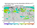 Low Pass Eddy Kinetic Energy at 200 hPa