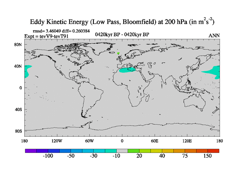Low Pass Eddy Kinetic Energy at 200 hPa