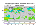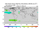 Low Pass Eddy Kinetic Energy at 200 hPa