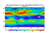 Low Pass Eddy Kinetic Energy at 200 hPa