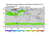 Low Pass Eddy Kinetic Energy at 200 hPa