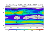 Low Pass Eddy Kinetic Energy at 200 hPa
