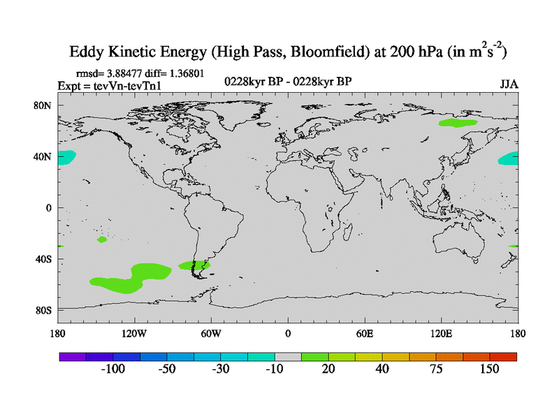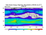 Low Pass Eddy Kinetic Energy at 200 hPa