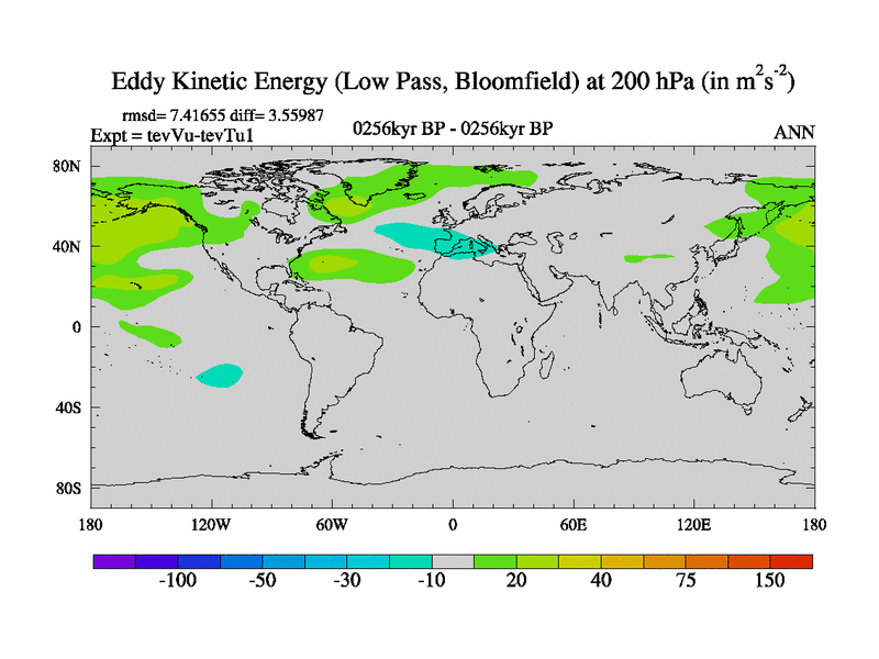 Low Pass Eddy Kinetic Energy at 200 hPa