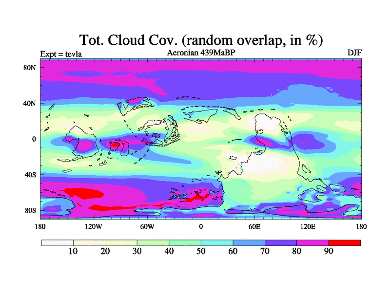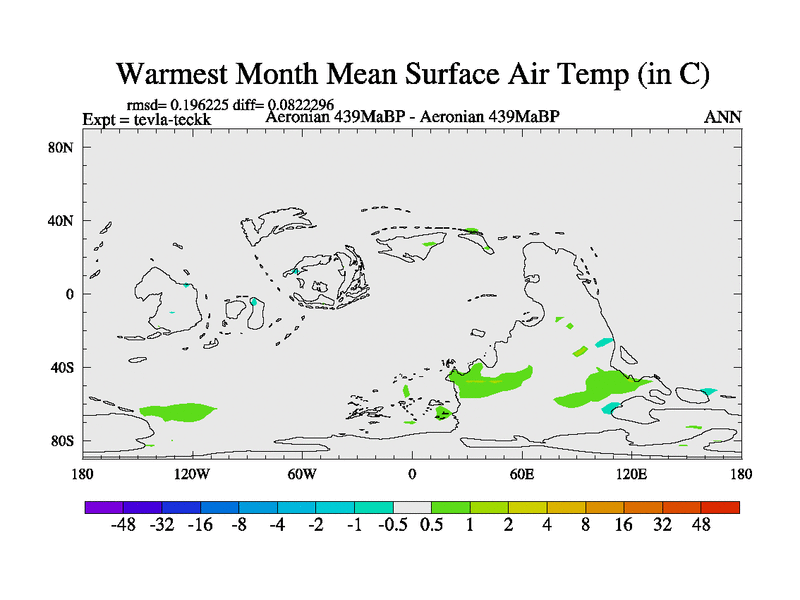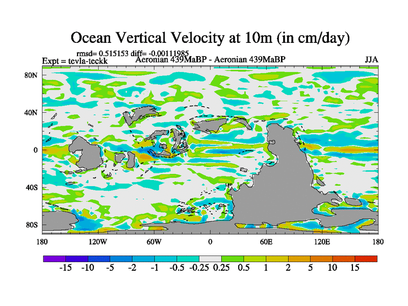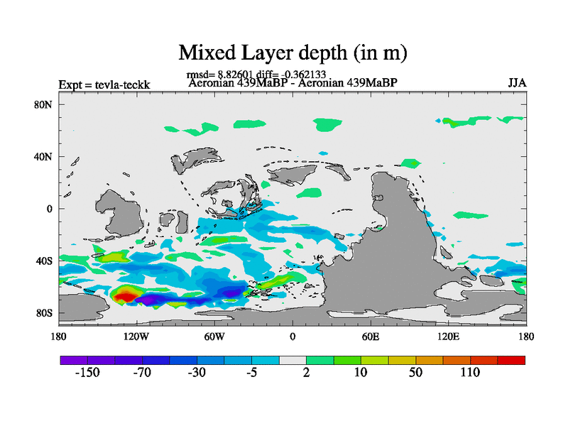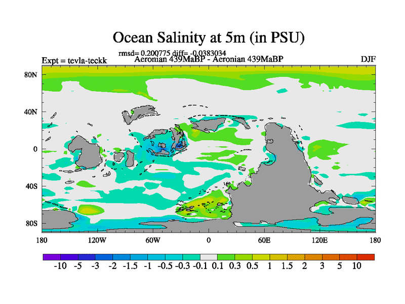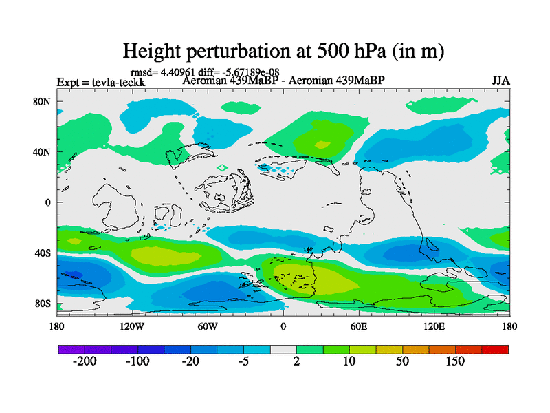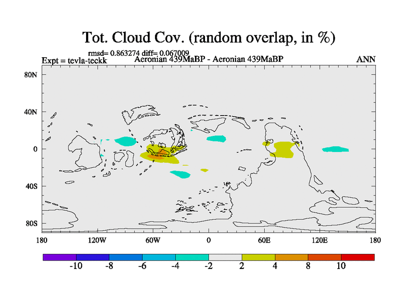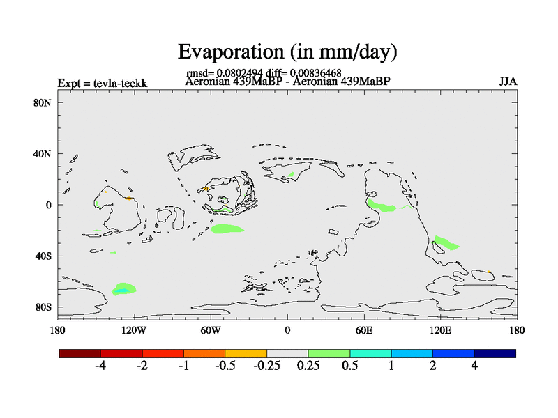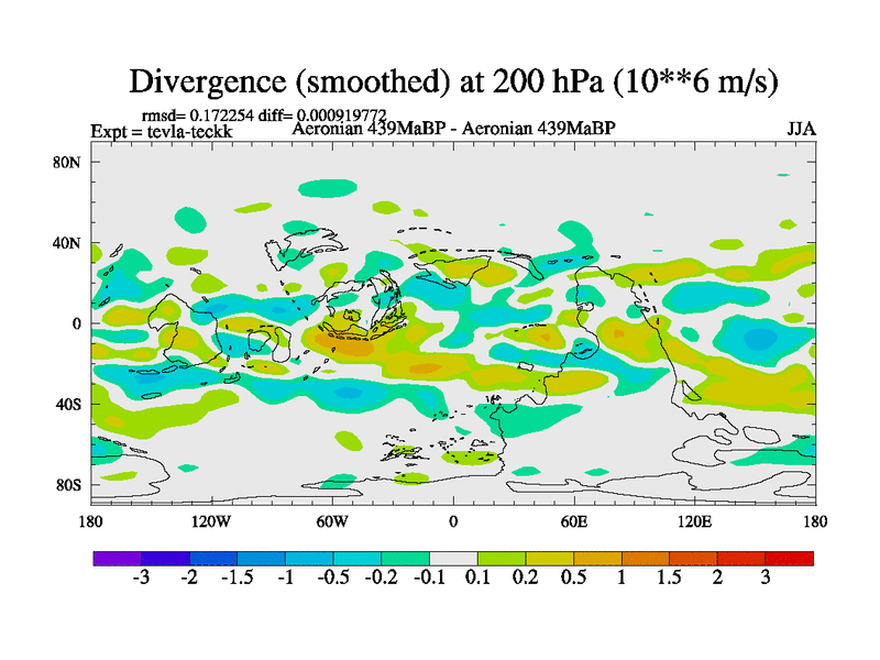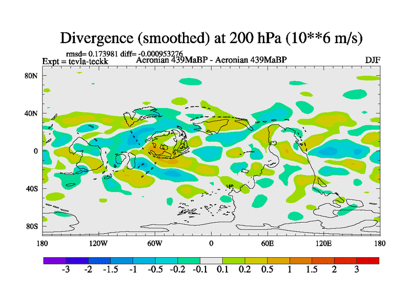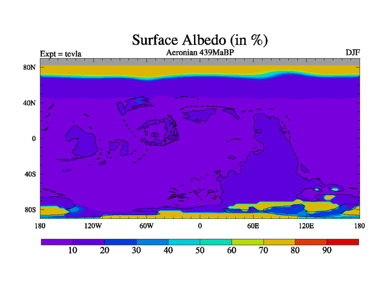 This is a Aeronian simulation with new control palaeogeog, with appropriate reduction in solar constant. It is also using the newer ozone mod which better represents the effects of stratospheric ozone. It does include the ocean stream function.