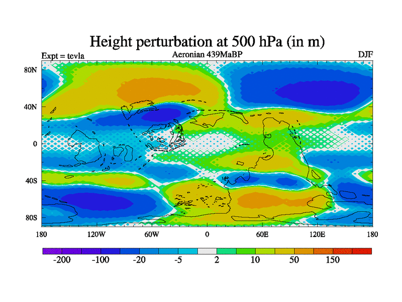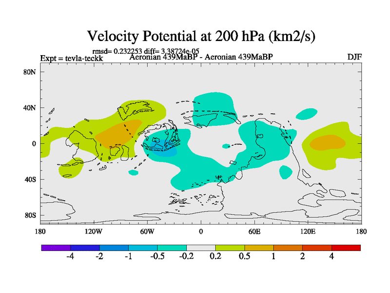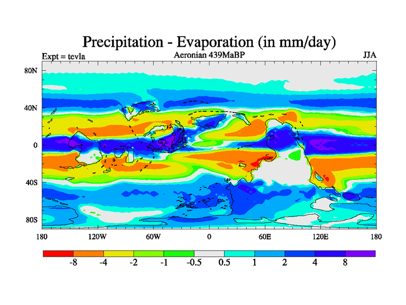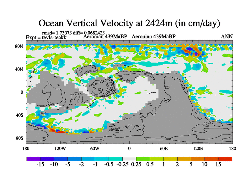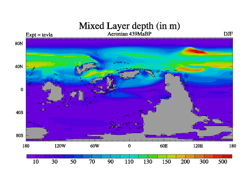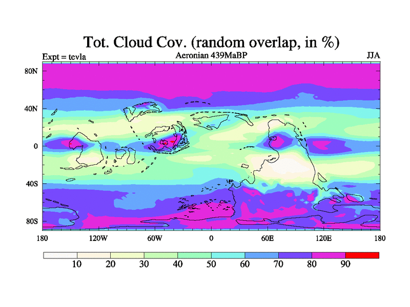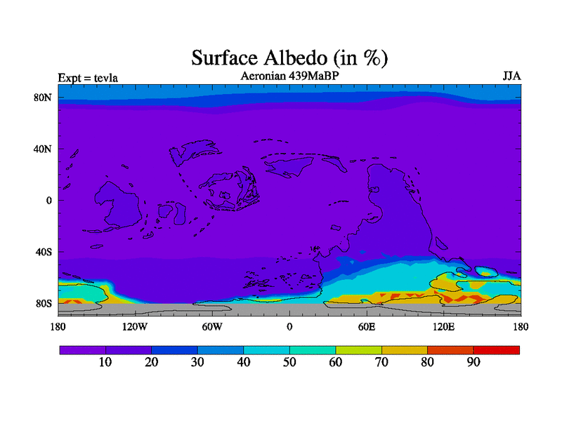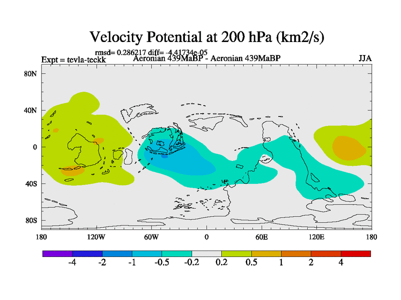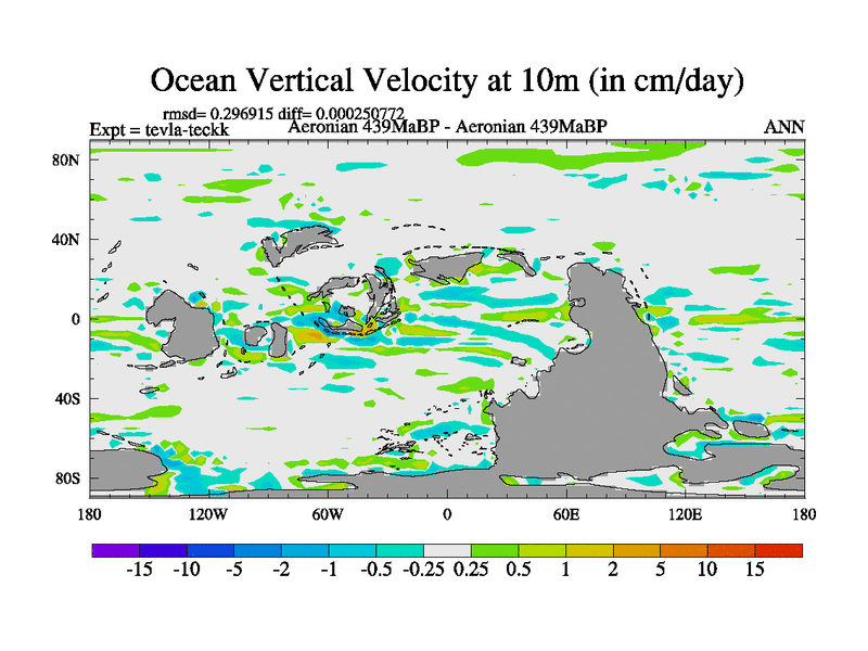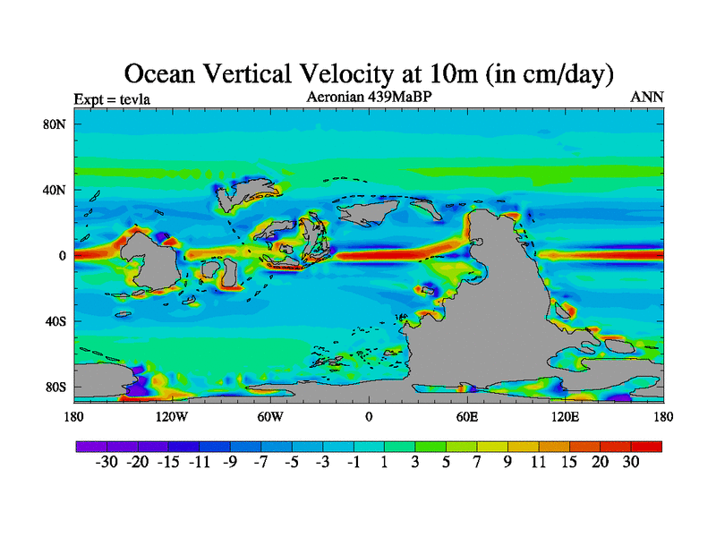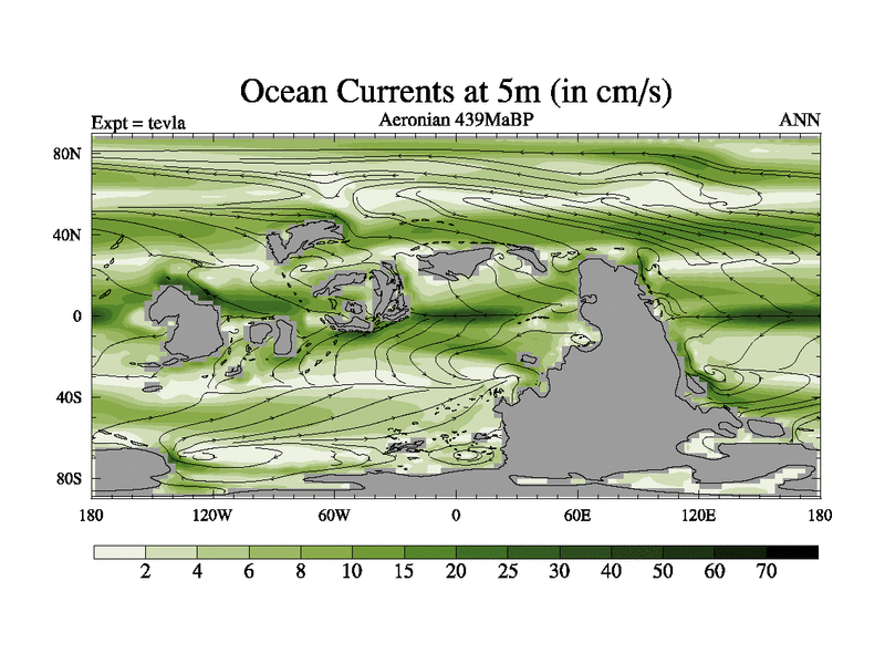 This is a Aeronian simulation with new control palaeogeog, with appropriate reduction in solar constant. It is also using the newer ozone mod which better represents the effects of stratospheric ozone. It does include the ocean stream function.