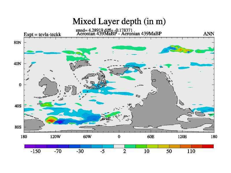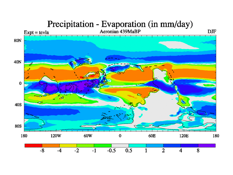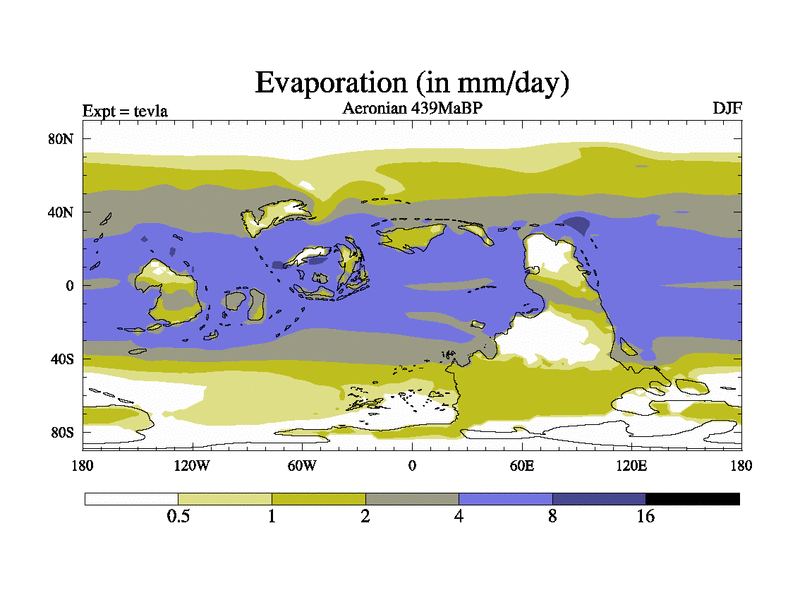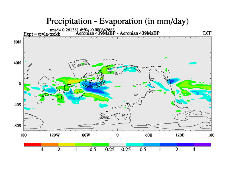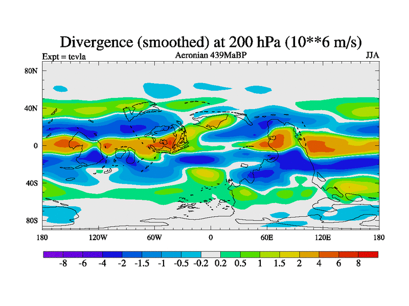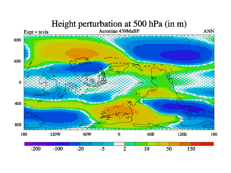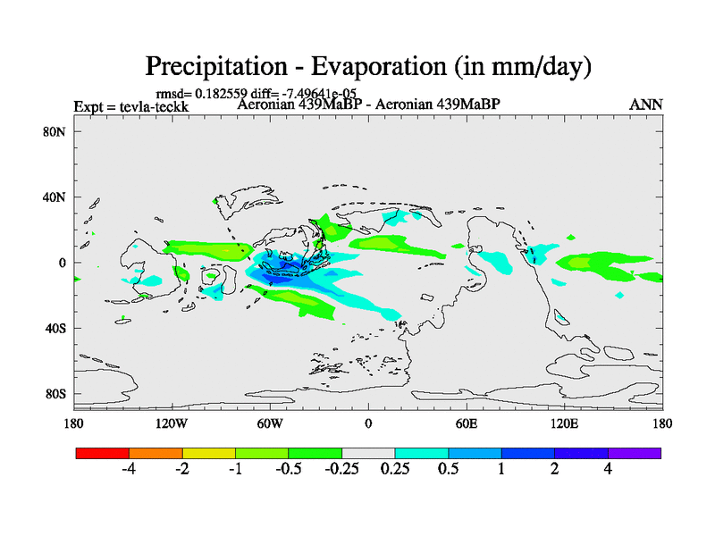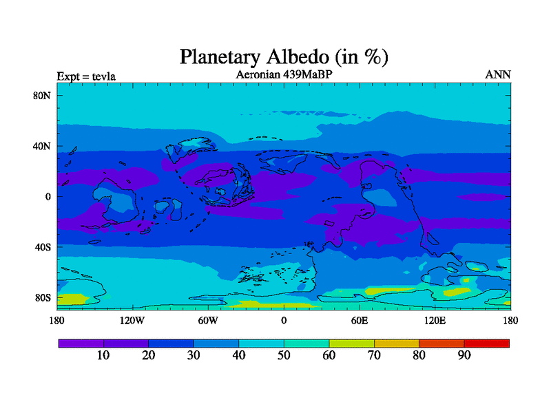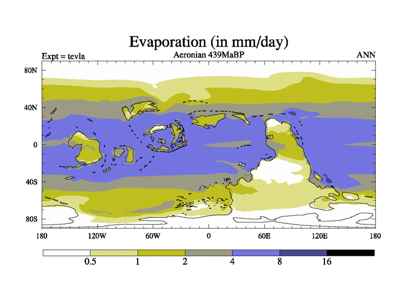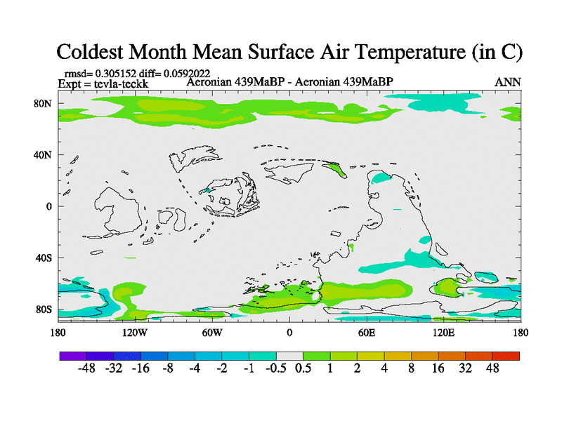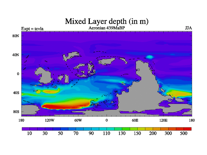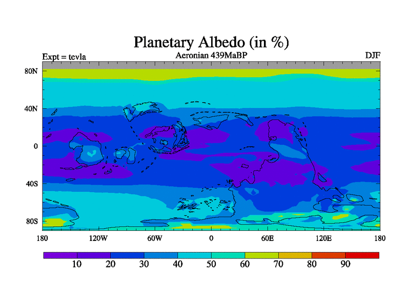 This is a Aeronian simulation with new control palaeogeog, with appropriate reduction in solar constant. It is also using the newer ozone mod which better represents the effects of stratospheric ozone. It does include the ocean stream function.