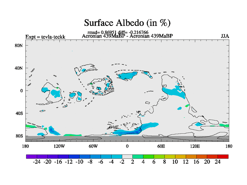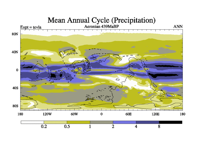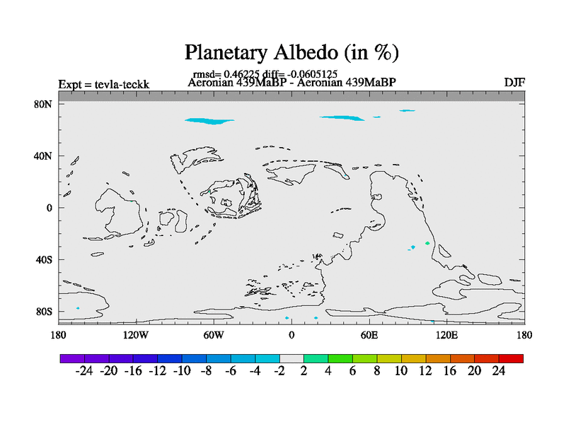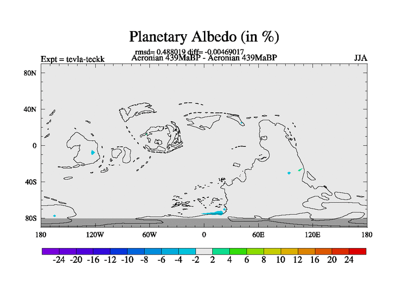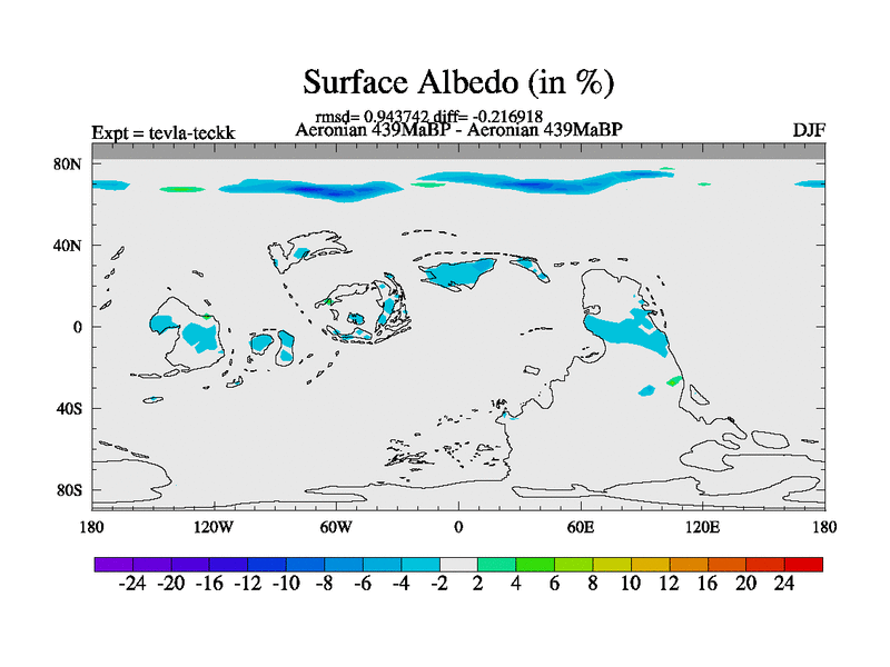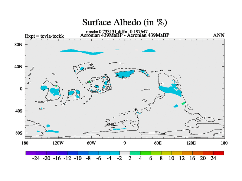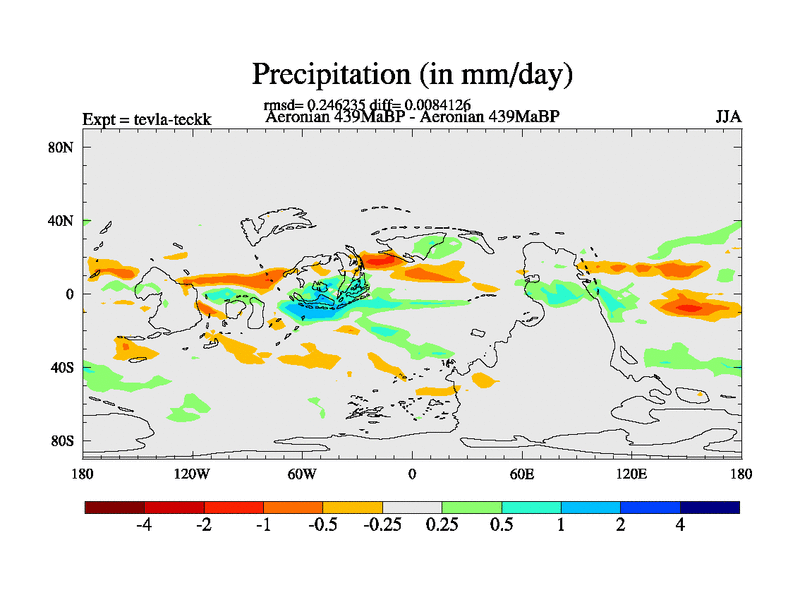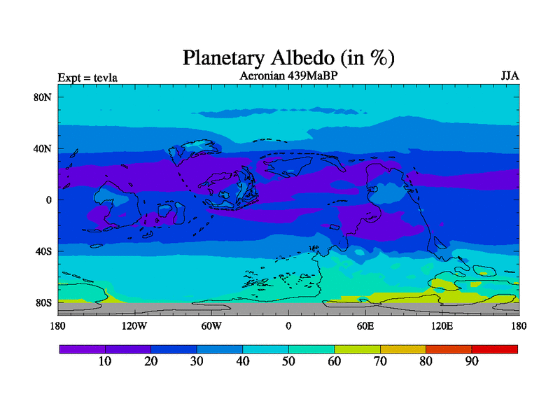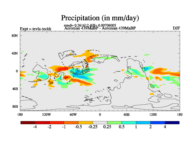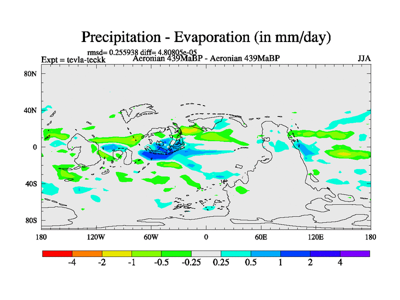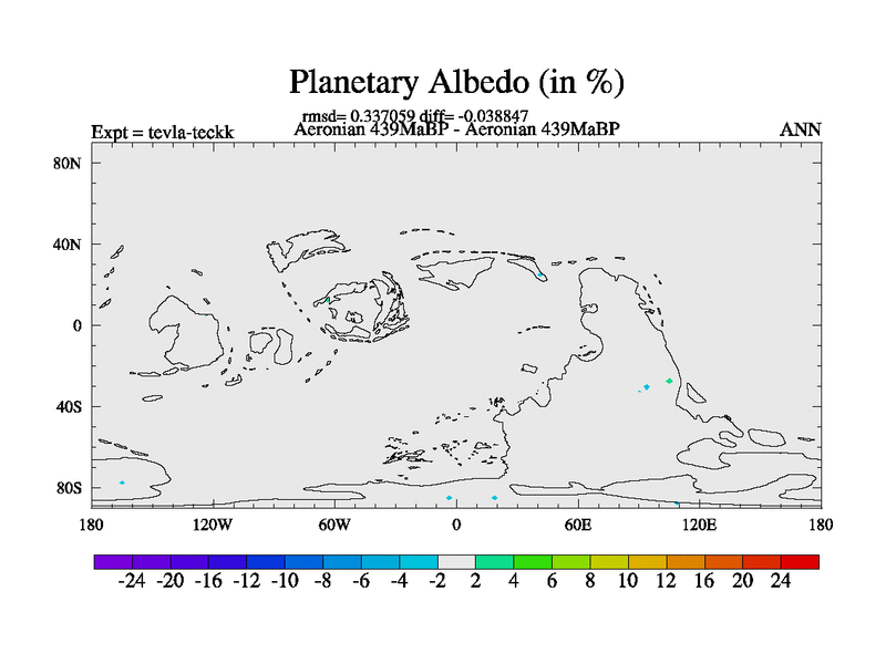 This is a Aeronian simulation with new control palaeogeog, with appropriate reduction in solar constant. It is also using the newer ozone mod which better represents the effects of stratospheric ozone. It does include the ocean stream function.