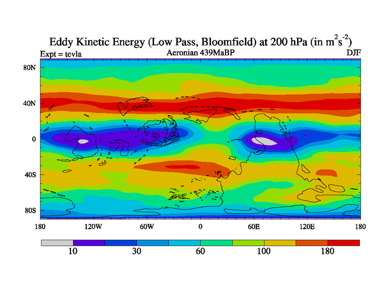 Low Pass Eddy Kinetic Energy at 200 hPa