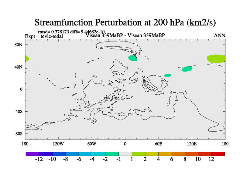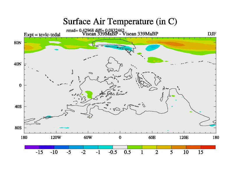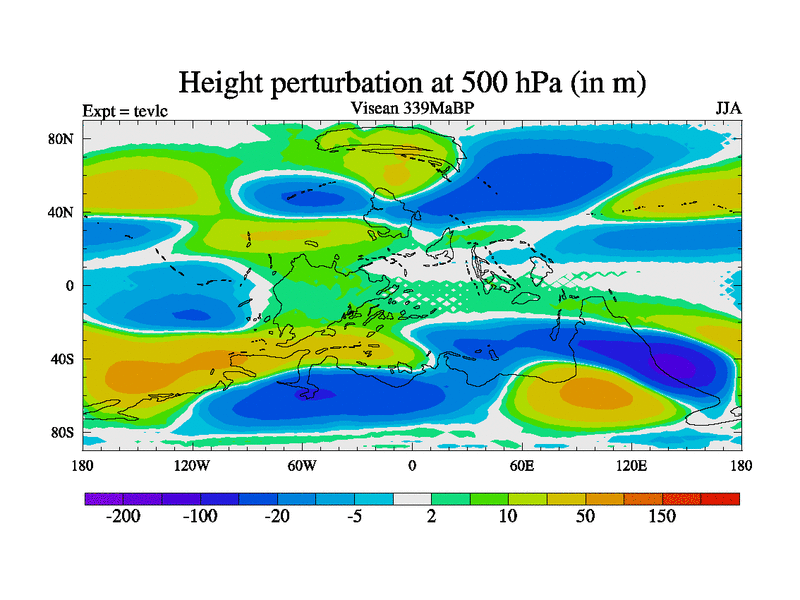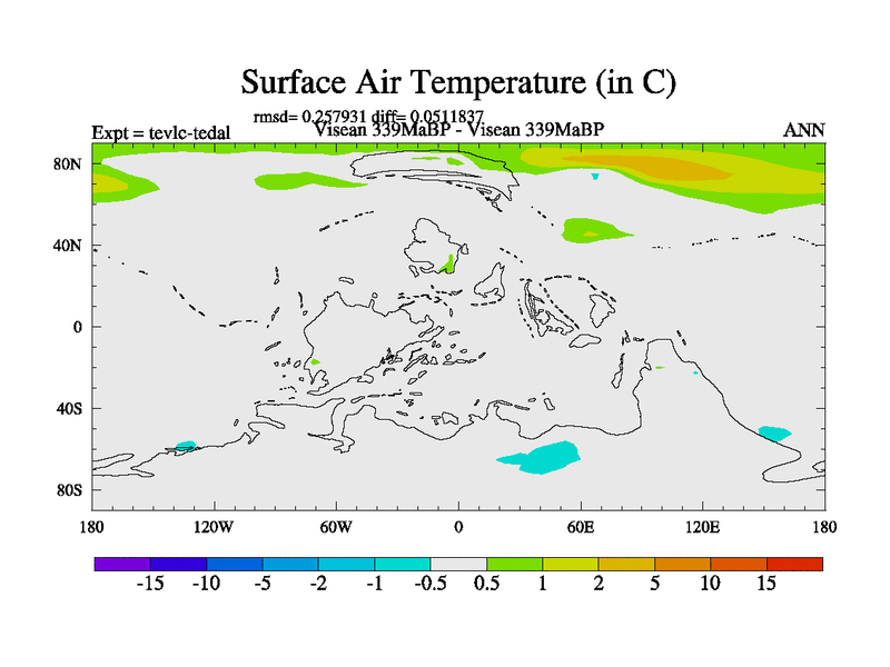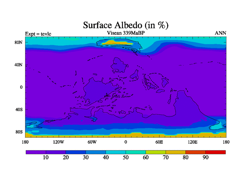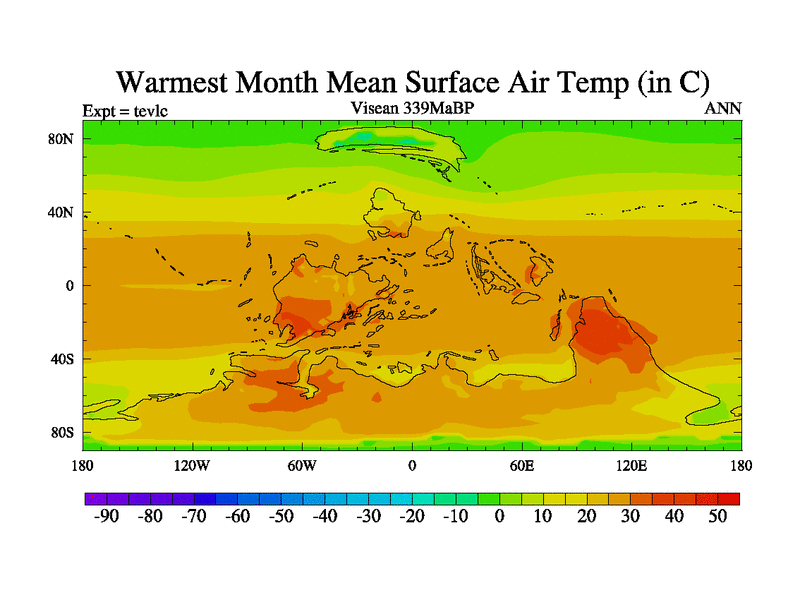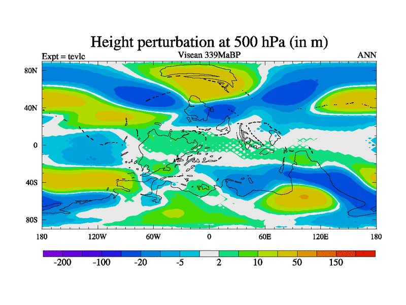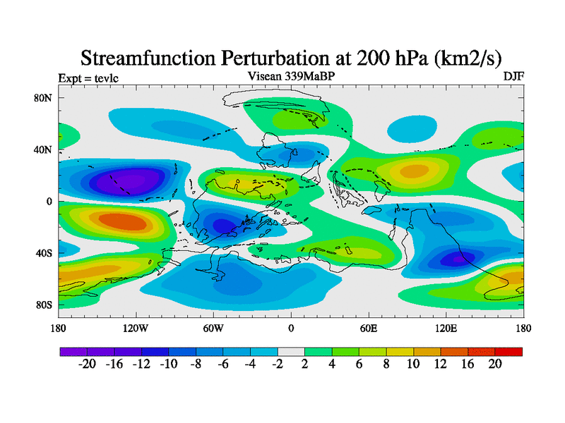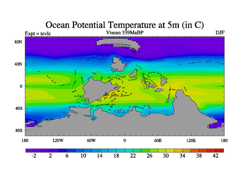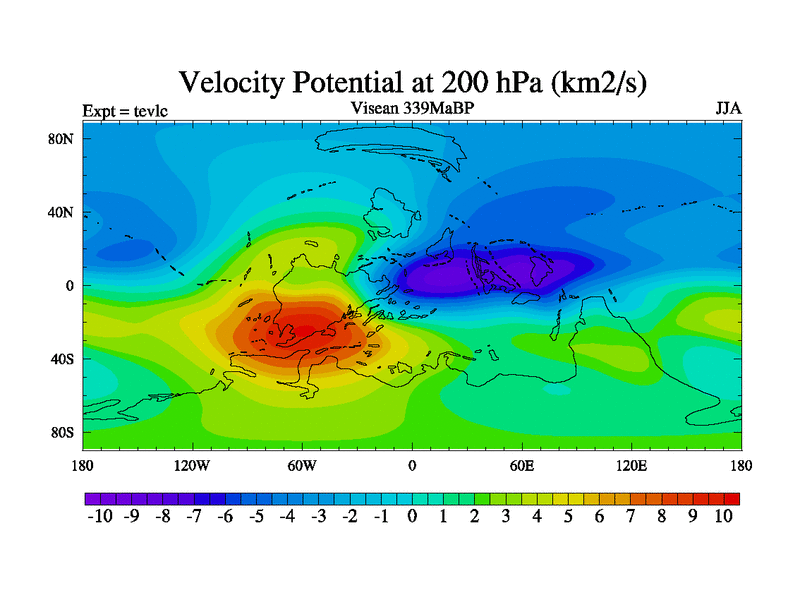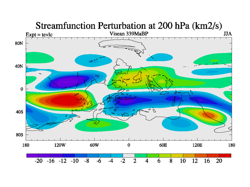 This is a Visean simulation with new control palaeogeog, 3xco2 and with appropriate reduction in solar constant. It is also using the newer ozone mod which better represents the effects of stratospheric ozone. It does include the ocean stream function.