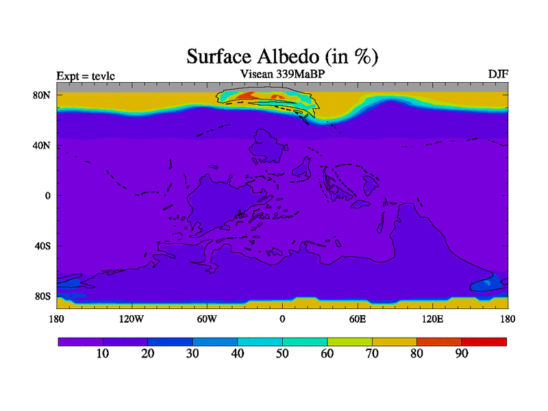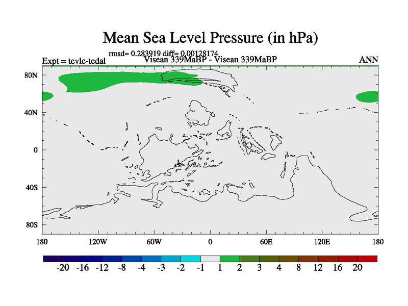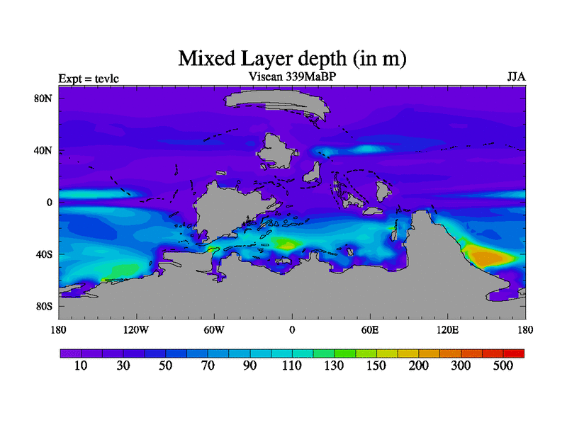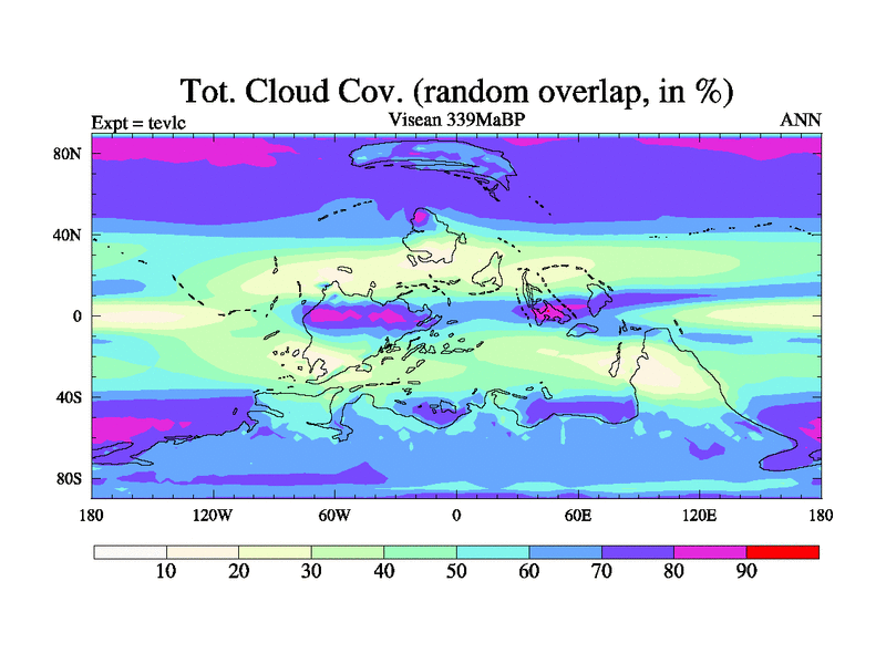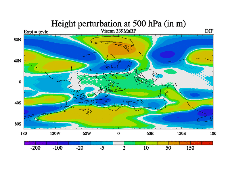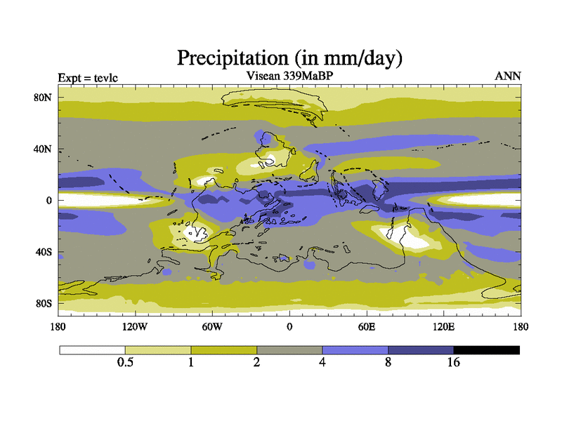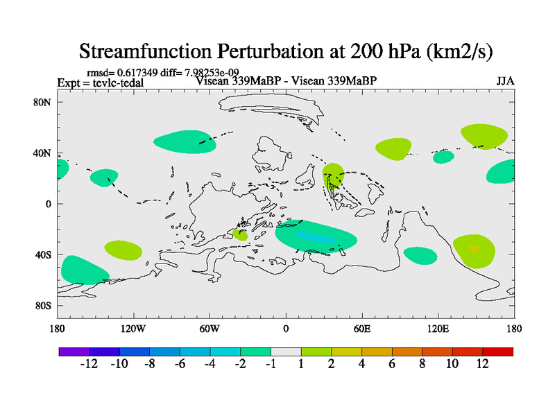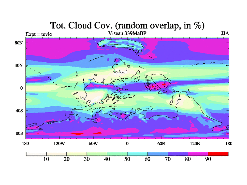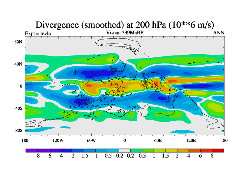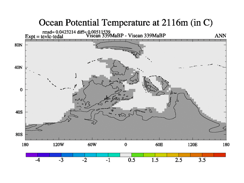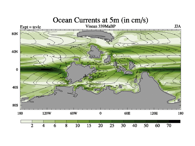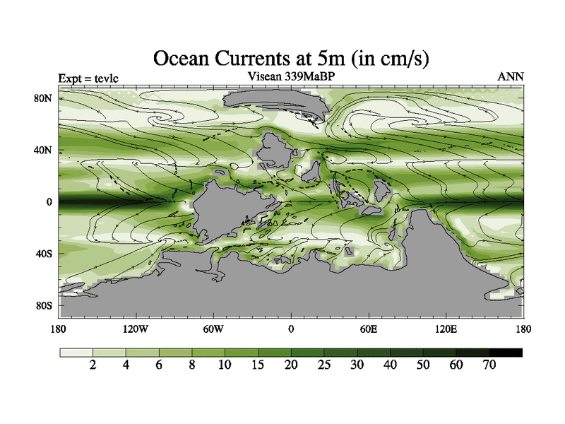 This is a Visean simulation with new control palaeogeog, 3xco2 and with appropriate reduction in solar constant. It is also using the newer ozone mod which better represents the effects of stratospheric ozone. It does include the ocean stream function.